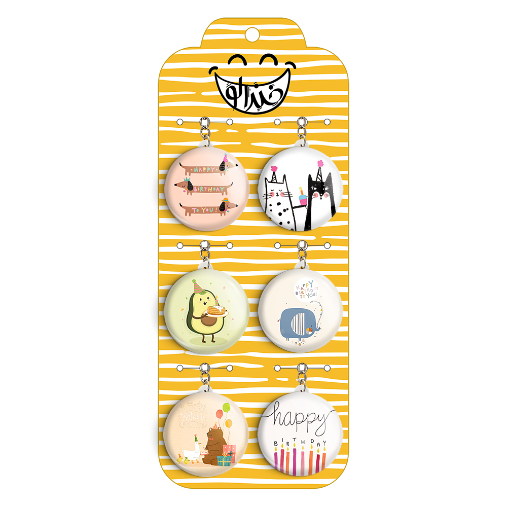 پک 6 عددی جاکلیدی خندالو طرح تولد با استفاده از روکش سلفون حرارتی مات ضدخش تولید شده که خاصیت ضدخش بودن آن عمر مفید استفاده از جاکلیدی ها را افزایش میدهد. چاپ جاکلیدی ها با دستگاه های استاندارد و با بهترین سطح کیفیت صورت گرفته و طرح با شفافیتی مثال زدنی و با سلفون چسبی تولید شده است که باعث شده محصول نهایی بدون شکست نور دیده شود.