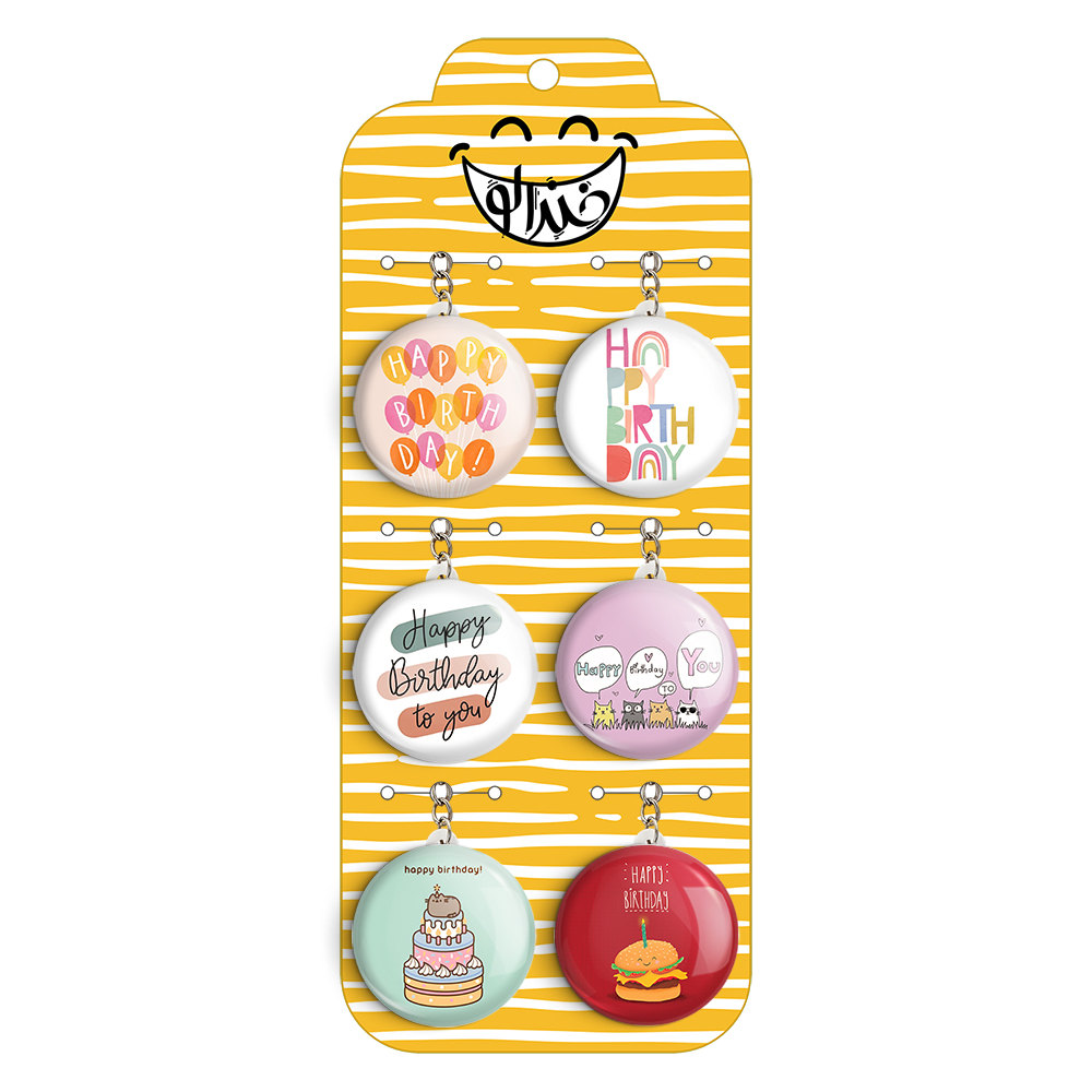 پک 6 عددی جاکلیدی خندالو طرح تولد با استفاده از روکش سلفون حرارتی مات ضدخش تولید شده که خاصیت ضدخش بودن آن عمر مفید استفاده از جاکلیدی ها را افزایش میدهد. چاپ جاکلیدی ها با دستگاه های استاندارد و با بهترین سطح کیفیت صورت گرفته و طرح با شفافیتی مثال زدنی و با سلفون چسبی تولید شده است که باعث شده محصول نهایی بدون شکست نور دیده شود.