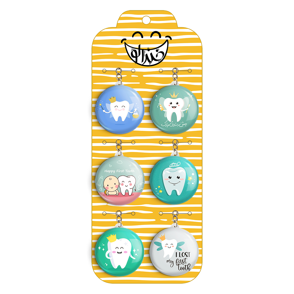 پک 6 عددی جاکلیدی خندالو طرح جشن دندونی پسرونه با استفاده از روکش سلفون حرارتی مات ضدخش تولید شده که خاصیت ضدخش بودن آن عمر مفید استفاده از جاکلیدی ها را افزایش میدهد. چاپ جاکلیدی ها با دستگاه های استاندارد و با بهترین سطح کیفیت صورت گرفته و طرح با شفافیتی مثال زدنی و با سلفون چسبی تولید شده است که باعث شده محصول نهایی بدون شکست نور دیده شود. همچنین بسته بندی جذاب و مینیمال جاکلیدی ها، آنها را محصولی مناسب هدیه کرده است. زنجیر و حلقه بکار برده شده در جاکلیدی خندالو از نوع حلقه درجه یک و ضخیم و محکم بوده و حین استفاده آسیب نمی بیند. قطعی پشتی جاکلیدی از جنس ABS شفاف سفید رنگ تولید شده که در مقابل خط و خش مقاوم بوده و به هیچ عنوان دچار شکستگی نخواهد شد.