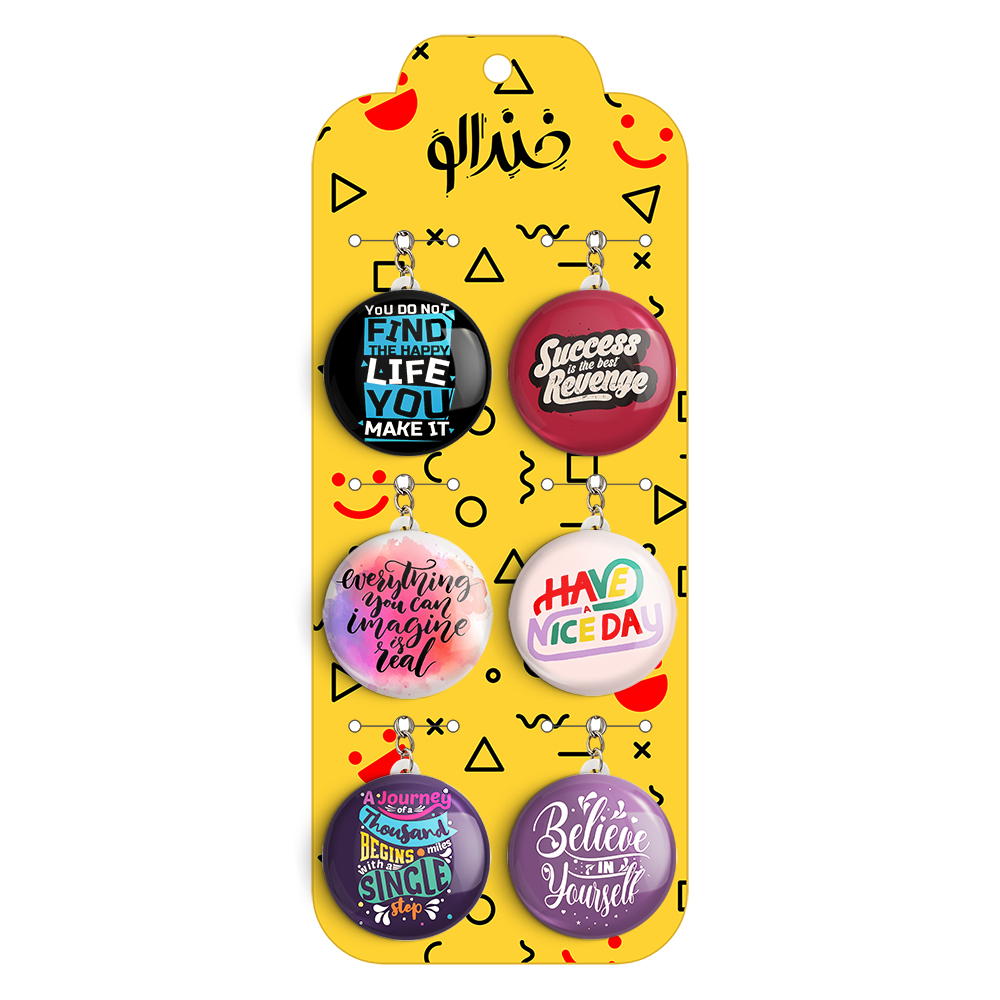 پک 6 عددی جاکلیدی خندالو طرح جملات انگیزشی با استفاده از روکش سلفون حرارتی مات ضدخش تولید شده که خاصیت ضدخش بودن آن عمر مفید استفاده از جاکلیدی ها را افزایش میدهد. چاپ جاکلیدی ها با دستگاه های استاندارد و با بهترین سطح کیفیت صورت گرفته و طرح با شفافیتی مثال زدنی و با سلفون چسبی تولید شده است که باعث شده محصول نهایی بدون شکست نور دیده شود.