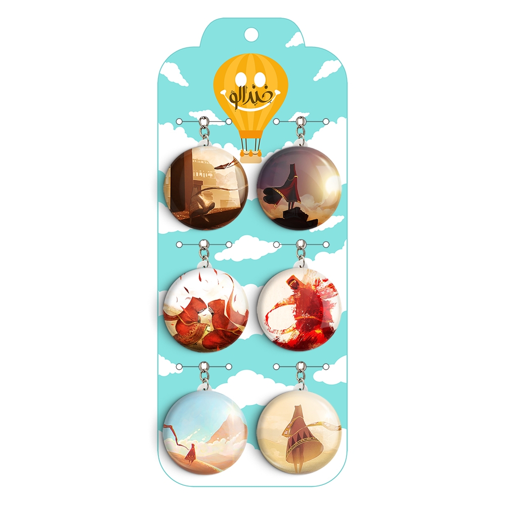 پک 6 عددی جاکلیدی خندالو طرح جورنی (Journey) با استفاده از روکش سلفون حرارتی مات ضدخش تولید شده که خاصیت ضدخش بودن آن عمر مفید استفاده از جاکلیدی ها را افزایش میدهد. چاپ جاکلیدی ها با دستگاه های استاندارد و با بهترین سطح کیفیت صورت گرفته و طرح با شفافیتی مثال زدنی و با سلفون چسبی تولید شده است که باعث شده محصول نهایی بدون شکست نور دیده شود.
