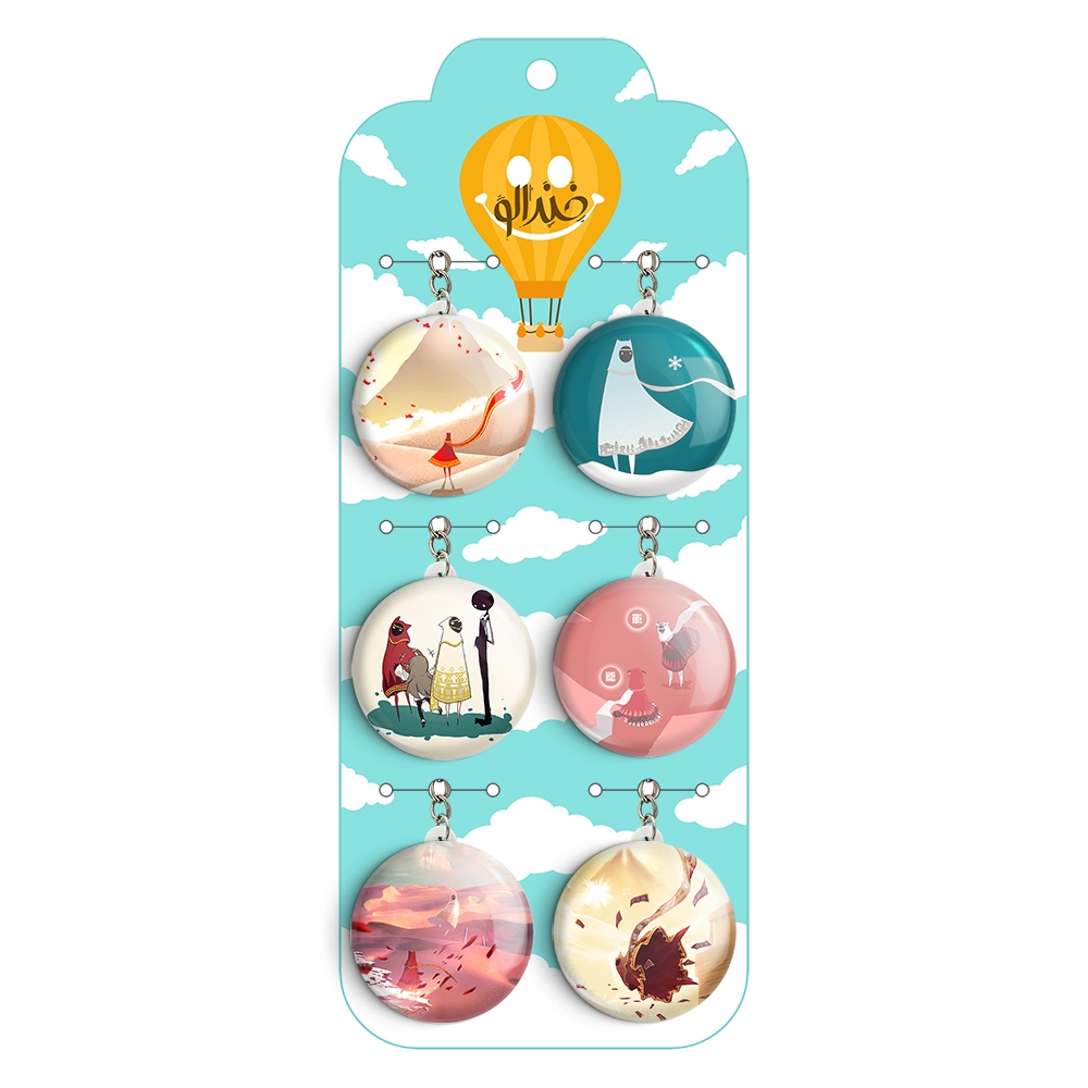 پک 6 عددی جاکلیدی خندالو طرح جورنی (Journey) با استفاده از روکش سلفون حرارتی مات ضدخش تولید شده که خاصیت ضدخش بودن آن عمر مفید استفاده از جاکلیدی ها را افزایش میدهد. چاپ جاکلیدی ها با دستگاه های استاندارد و با بهترین سطح کیفیت صورت گرفته و طرح با شفافیتی مثال زدنی و با سلفون چسبی تولید شده است که باعث شده محصول نهایی بدون شکست نور دیده شود. همچنین بسته بندی جذاب و مینیمال جاکلیدی ها، آنها را محصولی مناسب هدیه کرده است. زنجیر و حلقه بکار برده شده در جاکلیدی خندالو از نوع حلقه درجه یک و ضخیم و محکم بوده و حین استفاده آسیب نمی بیند. قطعی پشتی جاکلیدی از جنس ABS شفاف سفید رنگ تولید شده که در مقابل خط و خش مقاوم بوده و به هیچ عنوان دچار شکستگی نخواهد شد.