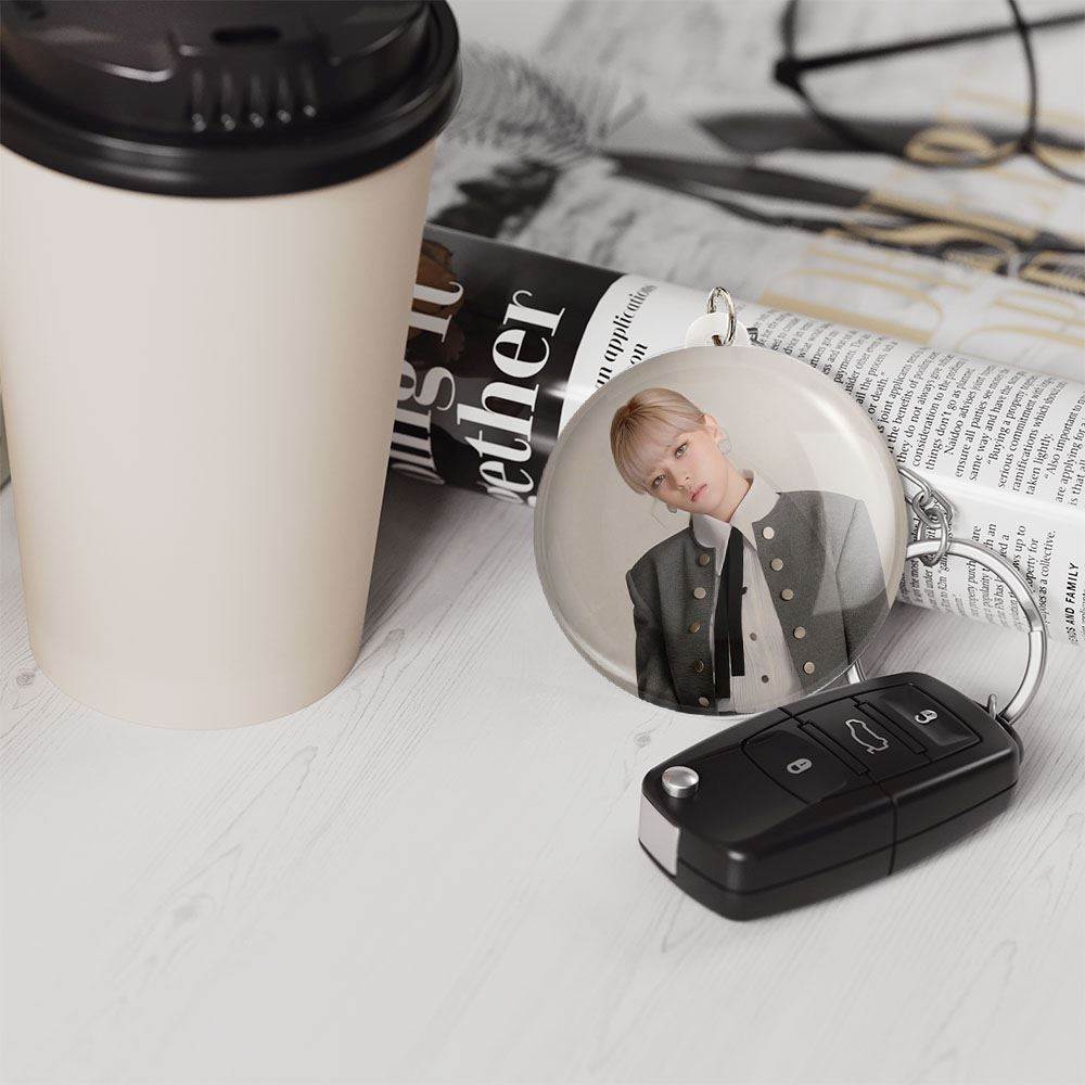 خندالو جاکلیدی جونگیون گروه توایس TWICE را با استفاده از روکش سلفون حرارتی مات مخملی ضدخش تولید می کند که خاصیت ضدخش بودن آن، کمک میکند تا عمر مفید استفاده از جاکلیدی ها افزایش پیدا کند و با یک خراش ساده مثل برخورد سطح ناخن با محصول، دچار و خط و خش نشود.