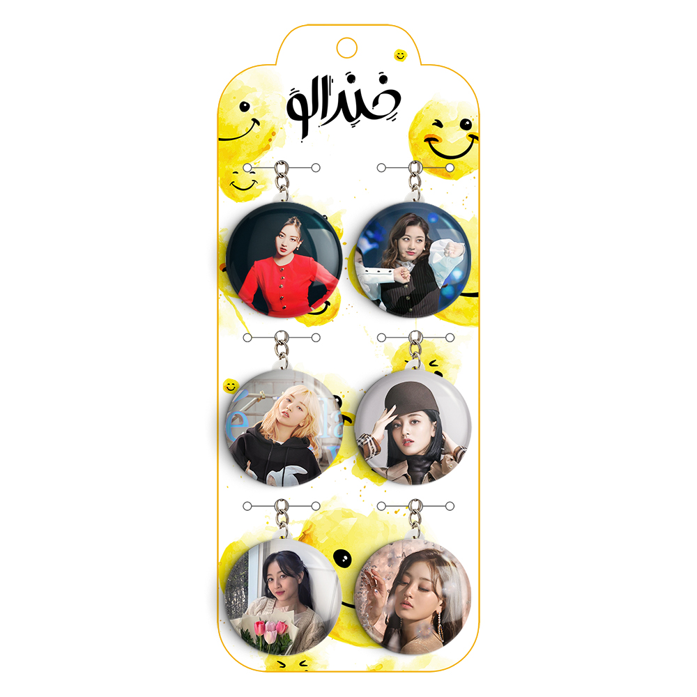 پک 6 عددی جاکلیدی خندالو طرح جیهیو توایس (Twice) با استفاده از روکش سلفون حرارتی مات ضدخش تولید شده که خاصیت ضدخش بودن آن عمر مفید استفاده از جاکلیدی ها را افزایش میدهد. چاپ جاکلیدی ها با دستگاه های استاندارد و با بهترین سطح کیفیت صورت گرفته و طرح با شفافیتی مثال زدنی و با سلفون چسبی تولید شده است که باعث شده محصول نهایی بدون شکست نور دیده شود. همچنین بسته بندی جذاب و مینیمال جاکلیدی ها، آنها را محصولی مناسب هدیه کرده است. زنجیر و حلقه بکار برده شده در جاکلیدی خندالو از نوع حلقه درجه یک و ضخیم و محکم بوده و حین استفاده آسیب نمی بیند. قطعی پشتی جاکلیدی از جنس ABS شفاف سفید رنگ تولید شده که در مقابل خط و خش مقاوم بوده و به هیچ عنوان دچار شکستگی نخواهد شد.