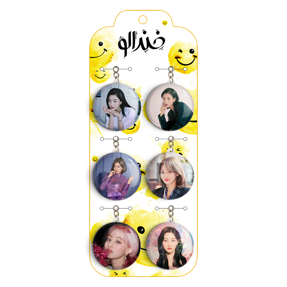 پک 6 عددی جاکلیدی خندالو طرح جیهیو توایس (Twice) با استفاده از روکش سلفون حرارتی مات ضدخش تولید شده که خاصیت ضدخش بودن آن عمر مفید استفاده از جاکلیدی ها را افزایش میدهد. چاپ جاکلیدی ها با دستگاه های استاندارد و با بهترین سطح کیفیت صورت گرفته و طرح با شفافیتی مثال زدنی و با سلفون چسبی تولید شده است که باعث شده محصول نهایی بدون شکست نور دیده شود. همچنین بسته بندی جذاب و مینیمال جاکلیدی ها، آنها را محصولی مناسب هدیه کرده است. زنجیر و حلقه بکار برده شده در جاکلیدی خندالو از نوع حلقه درجه یک و ضخیم و محکم بوده و حین استفاده آسیب نمی بیند. قطعی پشتی جاکلیدی از جنس ABS شفاف سفید رنگ تولید شده که در مقابل خط و خش مقاوم بوده و به هیچ عنوان دچار شکستگی نخواهد شد.