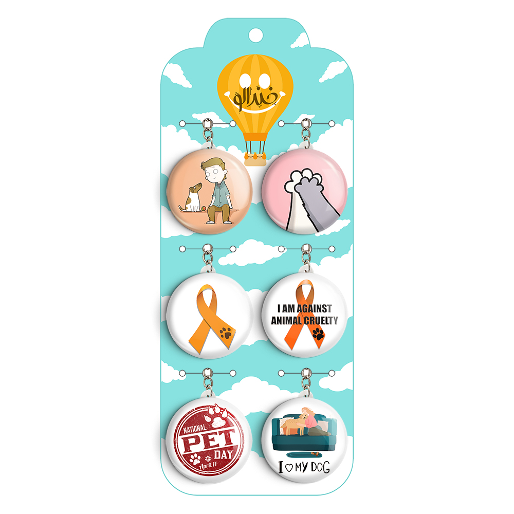 پک 6 عددی جاکلیدی خندالو طرح حمایت از حیوانات با استفاده از روکش سلفون حرارتی مات ضدخش تولید شده که خاصیت ضدخش بودن آن عمر مفید استفاده از جاکلیدی ها را افزایش میدهد. چاپ جاکلیدی ها با دستگاه های استاندارد و با بهترین سطح کیفیت صورت گرفته و طرح با شفافیتی مثال زدنی و با سلفون چسبی تولید شده است که باعث شده محصول نهایی بدون شکست نور دیده شود.
