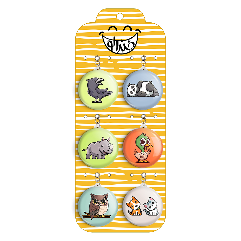 پک 6 عددی جاکلیدی خندالو طرح حیوانات بامزه با استفاده از روکش سلفون حرارتی مات ضدخش تولید شده که خاصیت ضدخش بودن آن عمر مفید استفاده از جاکلیدی ها را افزایش میدهد. چاپ جاکلیدی ها با دستگاه های استاندارد و با بهترین سطح کیفیت صورت گرفته و طرح با شفافیتی مثال زدنی و با سلفون چسبی تولید شده است که باعث شده محصول نهایی بدون شکست نور دیده شود.