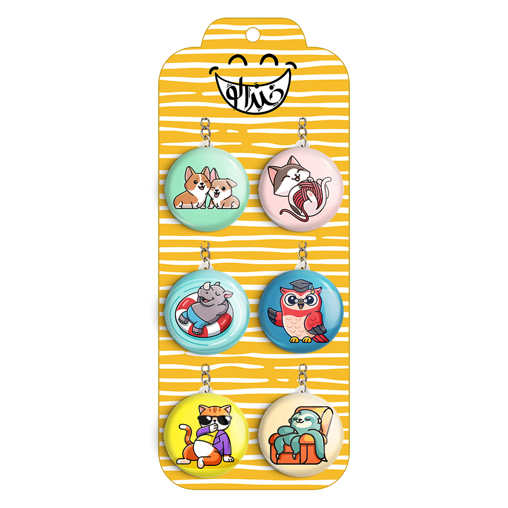 پک 6 عددی جاکلیدی خندالو طرح حیوانات بامزه با استفاده از روکش سلفون حرارتی مات ضدخش تولید شده که خاصیت ضدخش بودن آن عمر مفید استفاده از جاکلیدی ها را افزایش میدهد. چاپ جاکلیدی ها با دستگاه های استاندارد و با بهترین سطح کیفیت صورت گرفته و طرح با شفافیتی مثال زدنی و با سلفون چسبی تولید شده است که باعث شده محصول نهایی بدون شکست نور دیده شود.