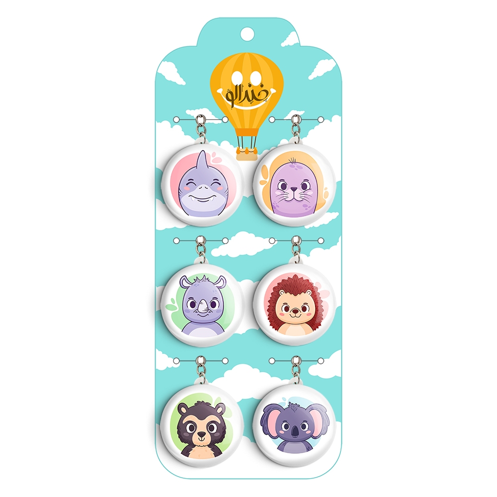 پک 6 عددی جاکلیدی خندالو طرح حیوانات بامزه با استفاده از روکش سلفون حرارتی مات ضدخش تولید شده که خاصیت ضدخش بودن آن عمر مفید استفاده از جاکلیدی ها را افزایش میدهد. چاپ جاکلیدی ها با دستگاه های استاندارد و با بهترین سطح کیفیت صورت گرفته و طرح با شفافیتی مثال زدنی و با سلفون چسبی تولید شده است که باعث شده محصول نهایی بدون شکست نور دیده شود.