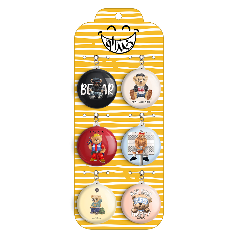 پک 6 عددی جاکلیدی خندالو طرح خرس تدی با استفاده از روکش سلفون حرارتی مات ضدخش تولید شده که خاصیت ضدخش بودن آن عمر مفید استفاده از جاکلیدی ها را افزایش میدهد. چاپ جاکلیدی ها با دستگاه های استاندارد و با بهترین سطح کیفیت صورت گرفته و طرح با شفافیتی مثال زدنی و با سلفون چسبی تولید شده است که باعث شده محصول نهایی بدون شکست نور دیده شود.