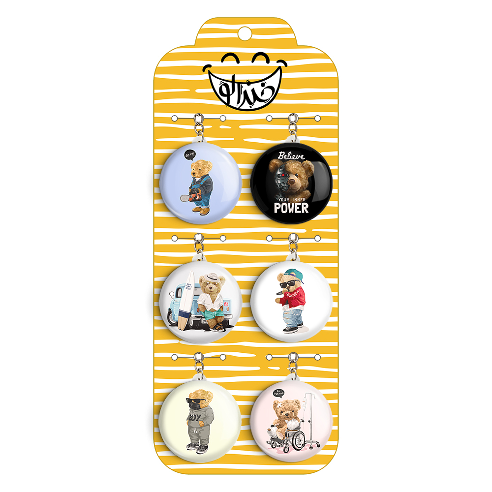 پک 6 عددی جاکلیدی خندالو طرح خرس تدی با استفاده از روکش سلفون حرارتی مات ضدخش تولید شده که خاصیت ضدخش بودن آن عمر مفید استفاده از جاکلیدی ها را افزایش میدهد. چاپ جاکلیدی ها با دستگاه های استاندارد و با بهترین سطح کیفیت صورت گرفته و طرح با شفافیتی مثال زدنی و با سلفون چسبی تولید شده است که باعث شده محصول نهایی بدون شکست نور دیده شود. همچنین بسته بندی جذاب و مینیمال جاکلیدی ها، آنها را محصولی مناسب هدیه کرده است. زنجیر و حلقه بکار برده شده در جاکلیدی خندالو از نوع حلقه درجه یک و ضخیم و محکم بوده و حین استفاده آسیب نمی بیند. قطعی پشتی جاکلیدی از جنس ABS شفاف سفید رنگ تولید شده که در مقابل خط و خش مقاوم بوده و به هیچ عنوان دچار شکستگی نخواهد شد.