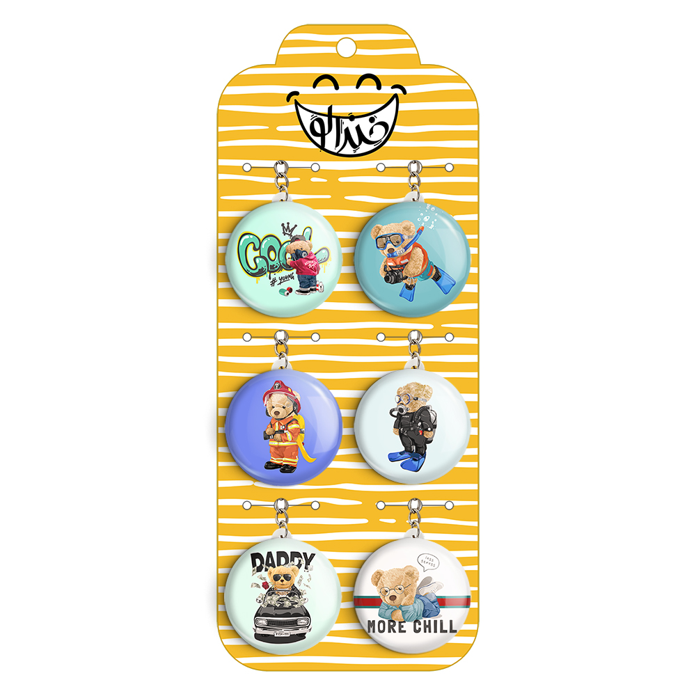 پک 6 عددی جاکلیدی خندالو طرح خرس تدی با استفاده از روکش سلفون حرارتی مات ضدخش تولید شده که خاصیت ضدخش بودن آن عمر مفید استفاده از جاکلیدی ها را افزایش میدهد. چاپ جاکلیدی ها با دستگاه های استاندارد و با بهترین سطح کیفیت صورت گرفته و طرح با شفافیتی مثال زدنی و با سلفون چسبی تولید شده است که باعث شده محصول نهایی بدون شکست نور دیده شود.