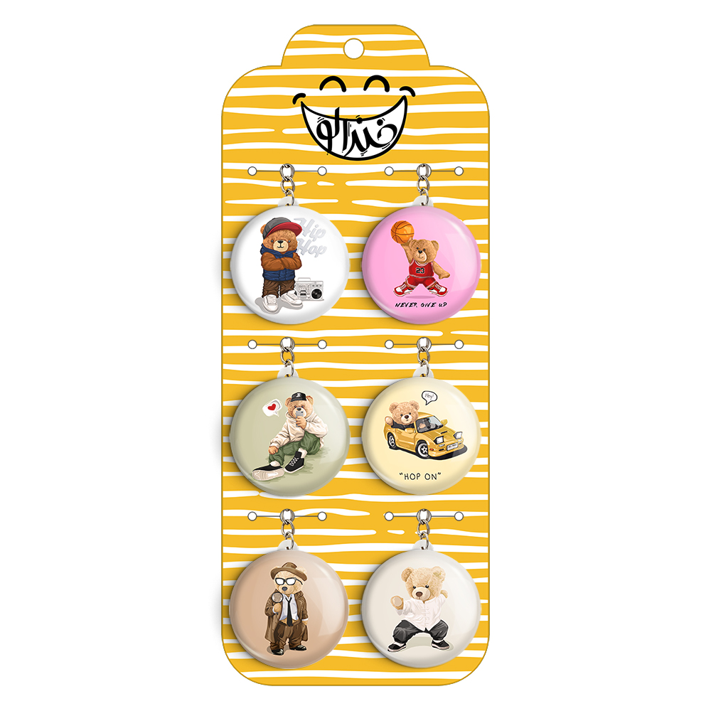 پک 6 عددی جاکلیدی خندالو طرح خرس تدی با استفاده از روکش سلفون حرارتی مات ضدخش تولید شده که خاصیت ضدخش بودن آن عمر مفید استفاده از جاکلیدی ها را افزایش میدهد. چاپ جاکلیدی ها با دستگاه های استاندارد و با بهترین سطح کیفیت صورت گرفته و طرح با شفافیتی مثال زدنی و با سلفون چسبی تولید شده است که باعث شده محصول نهایی بدون شکست نور دیده شود.