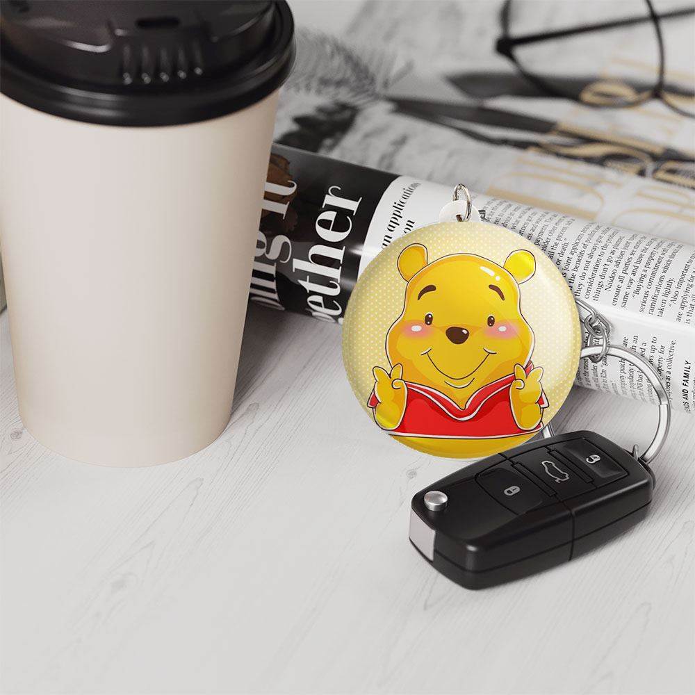 خندالو جاکلیدی خرس پو Winnie The Pooh را با استفاده از روکش سلفون حرارتی مات مخملی ضدخش تولید می کند که خاصیت ضدخش بودن آن، کمک میکند تا عمر مفید استفاده از جاکلیدی ها افزایش پیدا کند و با یک خراش ساده مثل برخورد سطح ناخن با محصول، دچار و خط و خش نشود.