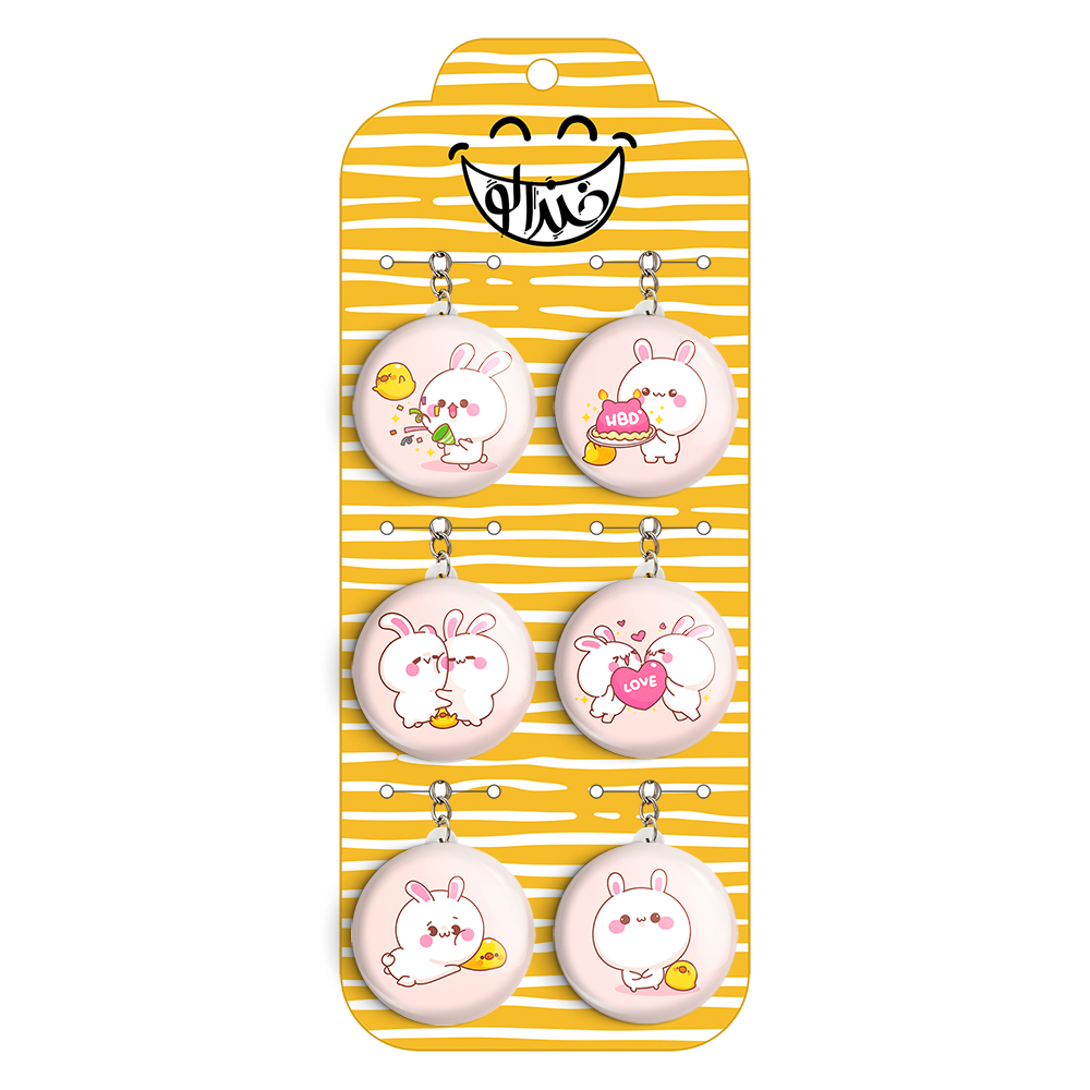 پک 6 عددی جاکلیدی خندالو طرح خرگوش بامزه با استفاده از روکش سلفون حرارتی مات ضدخش تولید شده که خاصیت ضدخش بودن آن عمر مفید استفاده از جاکلیدی ها را افزایش میدهد. چاپ جاکلیدی ها با دستگاه های استاندارد و با بهترین سطح کیفیت صورت گرفته و طرح با شفافیتی مثال زدنی و با سلفون چسبی تولید شده است که باعث شده محصول نهایی بدون شکست نور دیده شود.