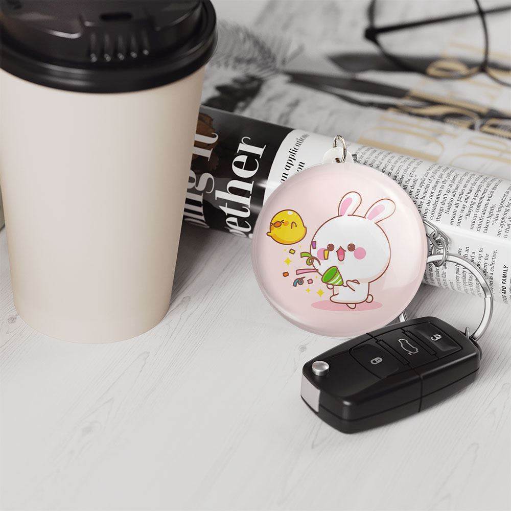 خندالو جاکلیدی خرگوش بامزه را با استفاده از روکش سلفون حرارتی مات مخملی ضدخش تولید می کند که خاصیت ضدخش بودن آن، کمک میکند تا عمر مفید استفاده از جاکلیدی ها افزایش پیدا کند و با یک خراش ساده مثل برخورد سطح ناخن با محصول، دچار و خط و خش نشود.