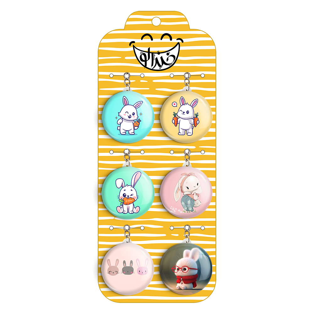پک 6 عددی جاکلیدی خندالو طرح خرگوش (Rabbit) با استفاده از روکش سلفون حرارتی مات ضدخش تولید شده که خاصیت ضدخش بودن آن عمر مفید استفاده از جاکلیدی ها را افزایش میدهد. چاپ جاکلیدی ها با دستگاه های استاندارد و با بهترین سطح کیفیت صورت گرفته و طرح با شفافیتی مثال زدنی و با سلفون چسبی تولید شده است که باعث شده محصول نهایی بدون شکست نور دیده شود.