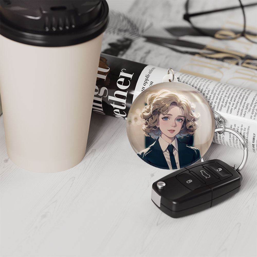 خندالو جاکلیدی دختر مو فرفری را با استفاده از روکش سلفون حرارتی مات مخملی ضدخش تولید می کند که خاصیت ضدخش بودن آن، کمک میکند تا عمر مفید استفاده از جاکلیدی ها افزایش پیدا کند و با یک خراش ساده مثل برخورد سطح ناخن با محصول، دچار و خط و خش نشود.