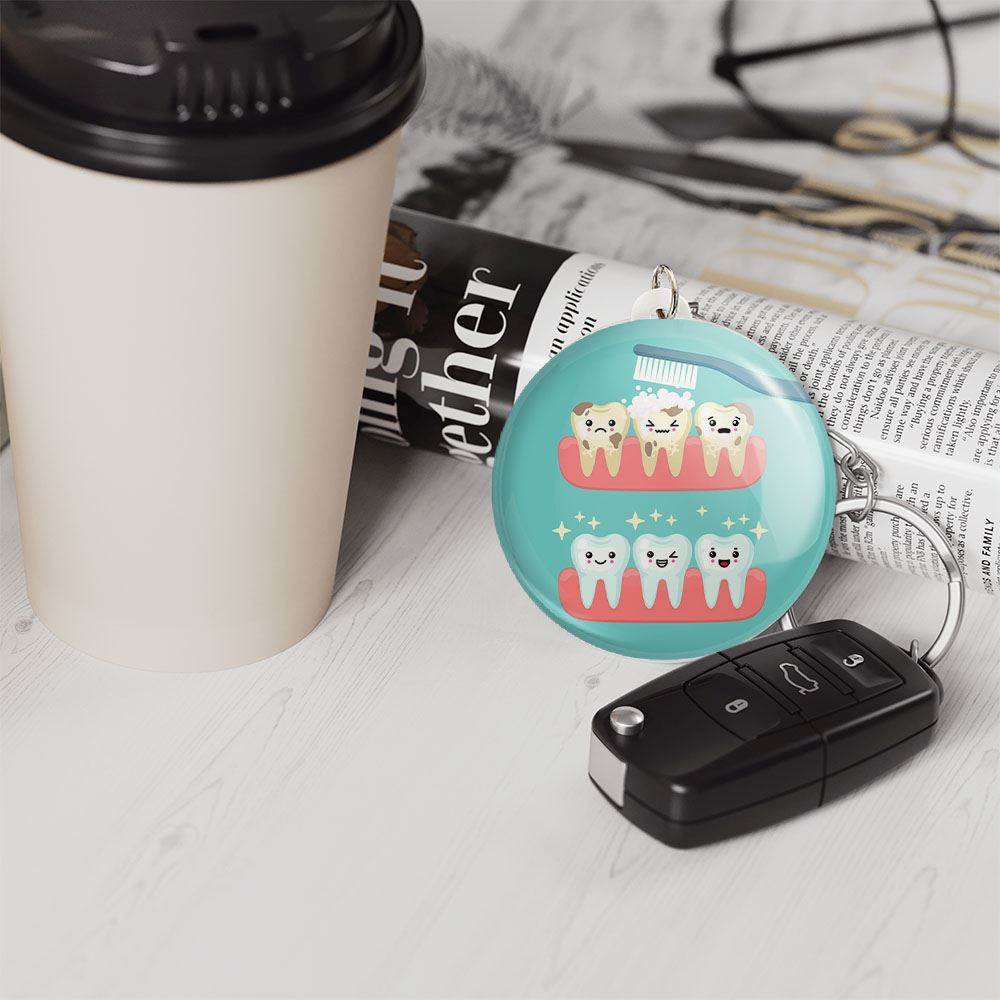 خندالو جاکلیدی دندان و دندانپزشکی کودکانه را با استفاده از روکش سلفون حرارتی مات مخملی ضدخش تولید می کند که خاصیت ضدخش بودن آن، کمک میکند تا عمر مفید استفاده از جاکلیدی ها افزایش پیدا کند و با یک خراش ساده مثل برخورد سطح ناخن با محصول، دچار و خط و خش نشود.