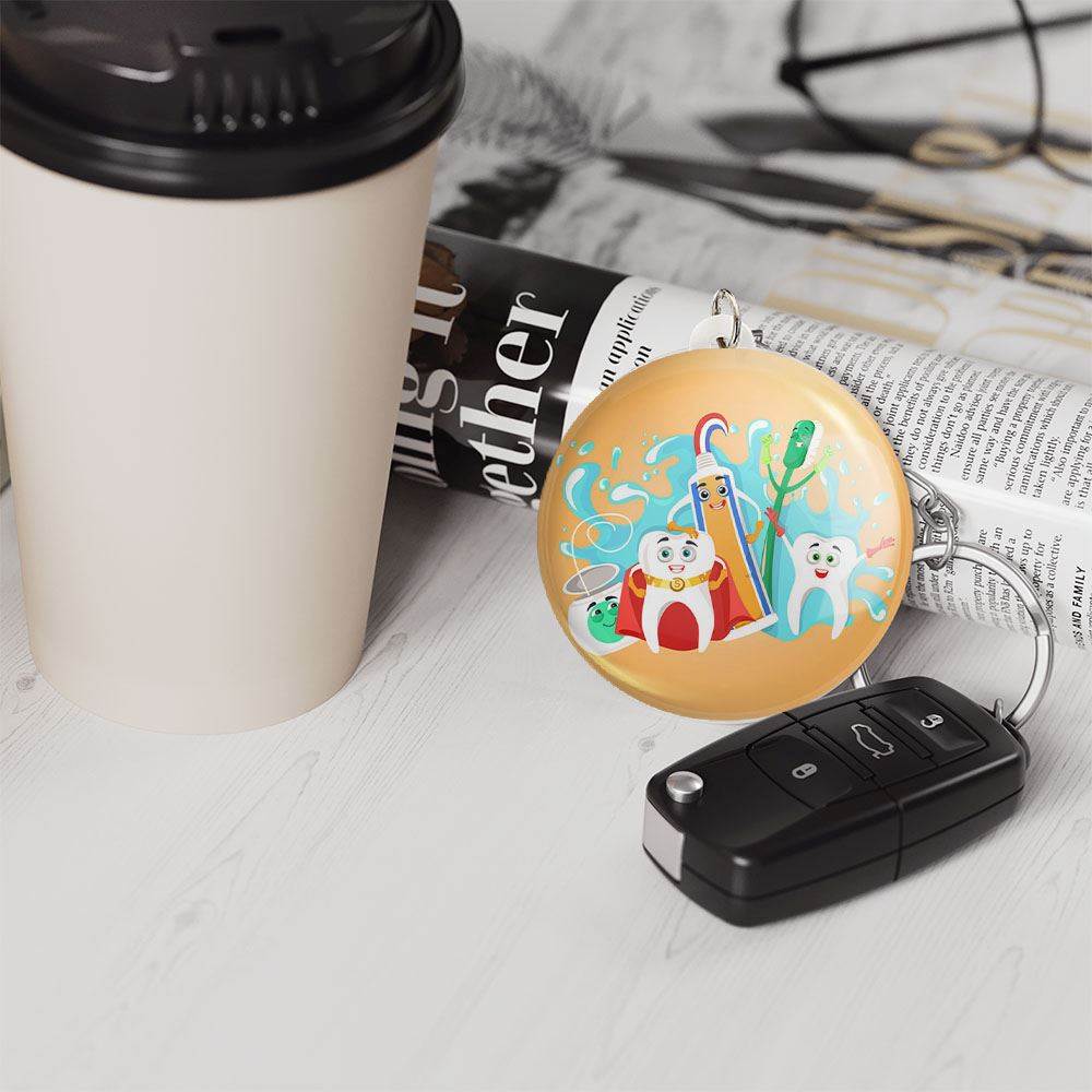 خندالو جاکلیدی دندان و دندانپزشکی کودکانه را با استفاده از روکش سلفون حرارتی مات مخملی ضدخش تولید می کند که خاصیت ضدخش بودن آن، کمک میکند تا عمر مفید استفاده از جاکلیدی ها افزایش پیدا کند و با یک خراش ساده مثل برخورد سطح ناخن با محصول، دچار و خط و خش نشود.