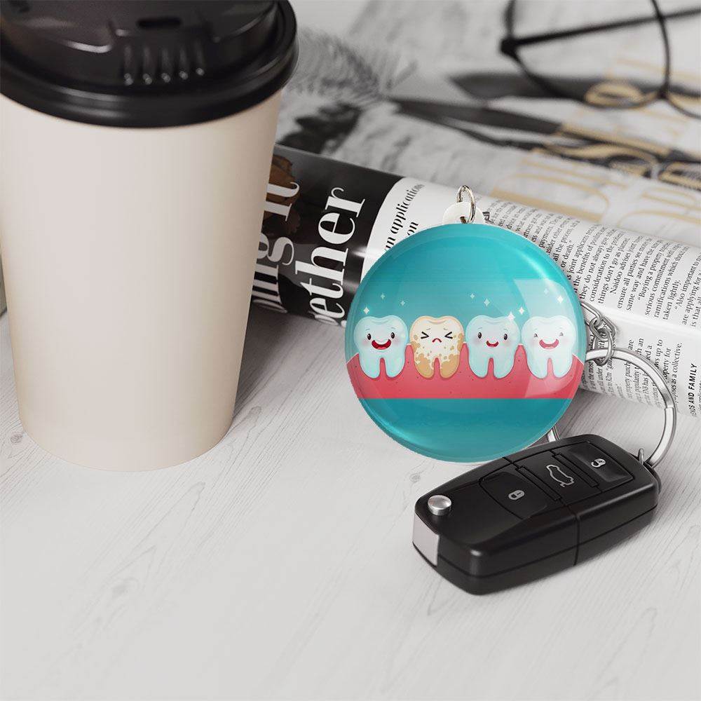 خندالو جاکلیدی دندان و دندانپزشکی کودکانه را با استفاده از روکش سلفون حرارتی مات مخملی ضدخش تولید می کند که خاصیت ضدخش بودن آن، کمک میکند تا عمر مفید استفاده از جاکلیدی ها افزایش پیدا کند و با یک خراش ساده مثل برخورد سطح ناخن با محصول، دچار و خط و خش نشود.