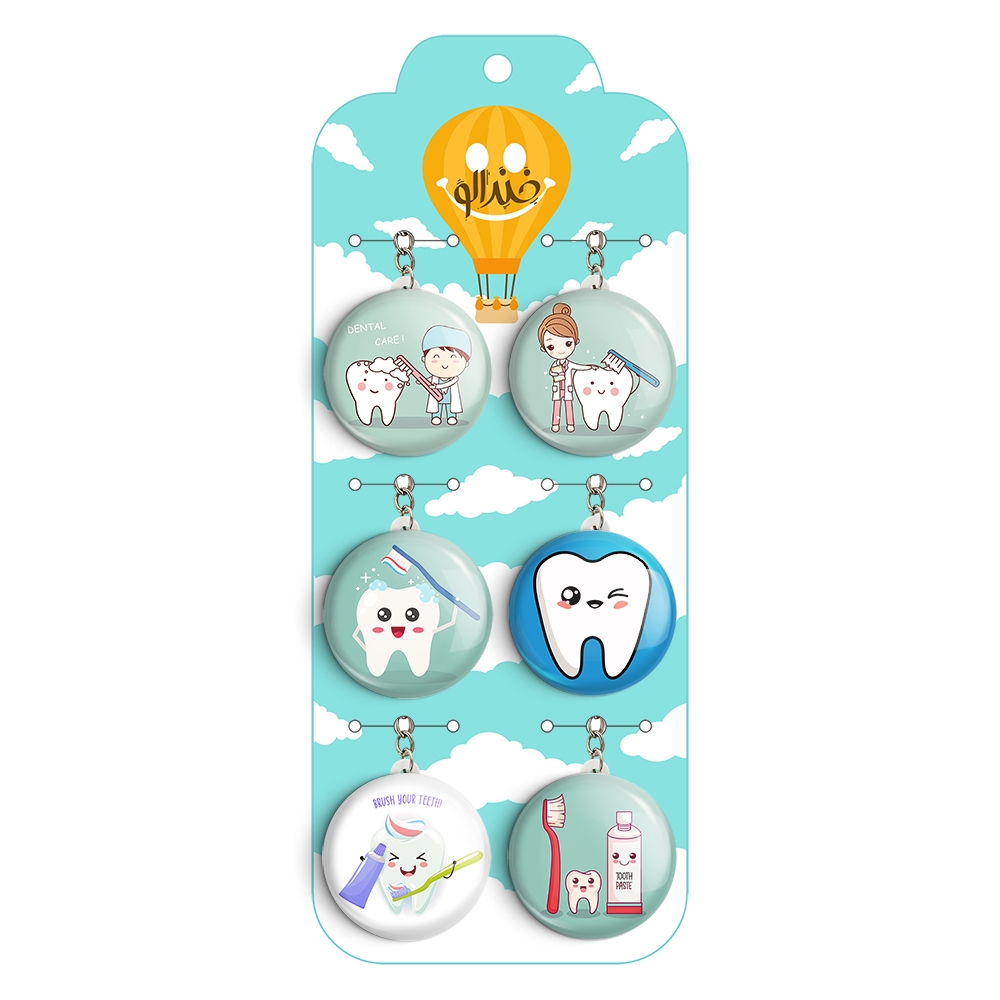 پک 6 عددی جاکلیدی خندالو طرح دندان و دندان پزشکی کودکانه با استفاده از روکش سلفون حرارتی مات ضدخش تولید شده که خاصیت ضدخش بودن آن عمر مفید استفاده از جاکلیدی ها را افزایش میدهد. چاپ جاکلیدی ها با دستگاه های استاندارد و با بهترین سطح کیفیت صورت گرفته و طرح با شفافیتی مثال زدنی و با سلفون چسبی تولید شده است که باعث شده محصول نهایی بدون شکست نور دیده شود.