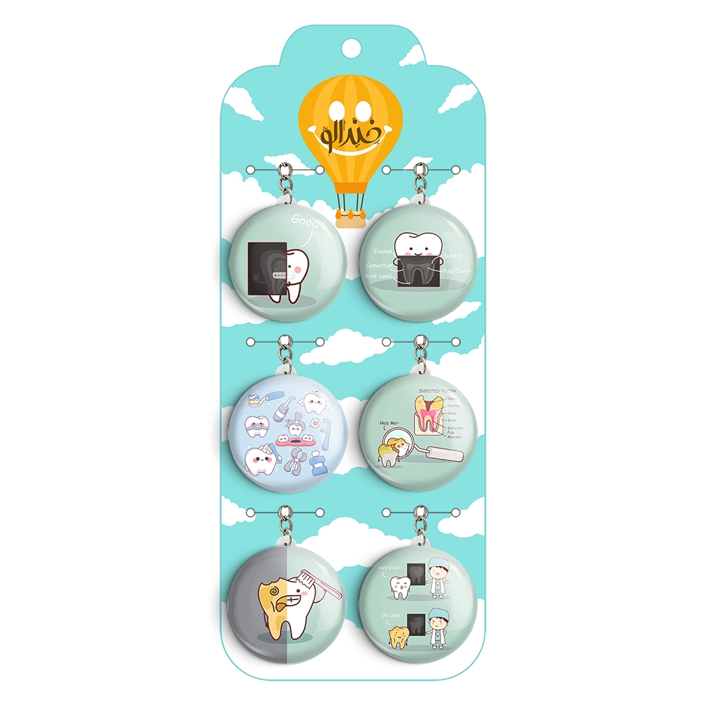 پک 6 عددی جاکلیدی خندالو طرح دندان و دندان پزشکی کودکانه با استفاده از روکش سلفون حرارتی مات ضدخش تولید شده که خاصیت ضدخش بودن آن عمر مفید استفاده از جاکلیدی ها را افزایش میدهد. چاپ جاکلیدی ها با دستگاه های استاندارد و با بهترین سطح کیفیت صورت گرفته و طرح با شفافیتی مثال زدنی و با سلفون چسبی تولید شده است که باعث شده محصول نهایی بدون شکست نور دیده شود.