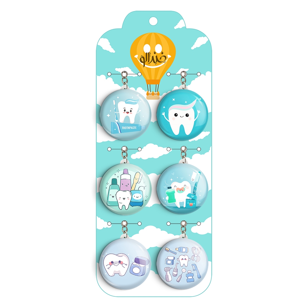 پک 6 عددی جاکلیدی خندالو طرح دندان و دندان پزشکی کودکانه با استفاده از روکش سلفون حرارتی مات ضدخش تولید شده که خاصیت ضدخش بودن آن عمر مفید استفاده از جاکلیدی ها را افزایش میدهد. چاپ جاکلیدی ها با دستگاه های استاندارد و با بهترین سطح کیفیت صورت گرفته و طرح با شفافیتی مثال زدنی و با سلفون چسبی تولید شده است که باعث شده محصول نهایی بدون شکست نور دیده شود.