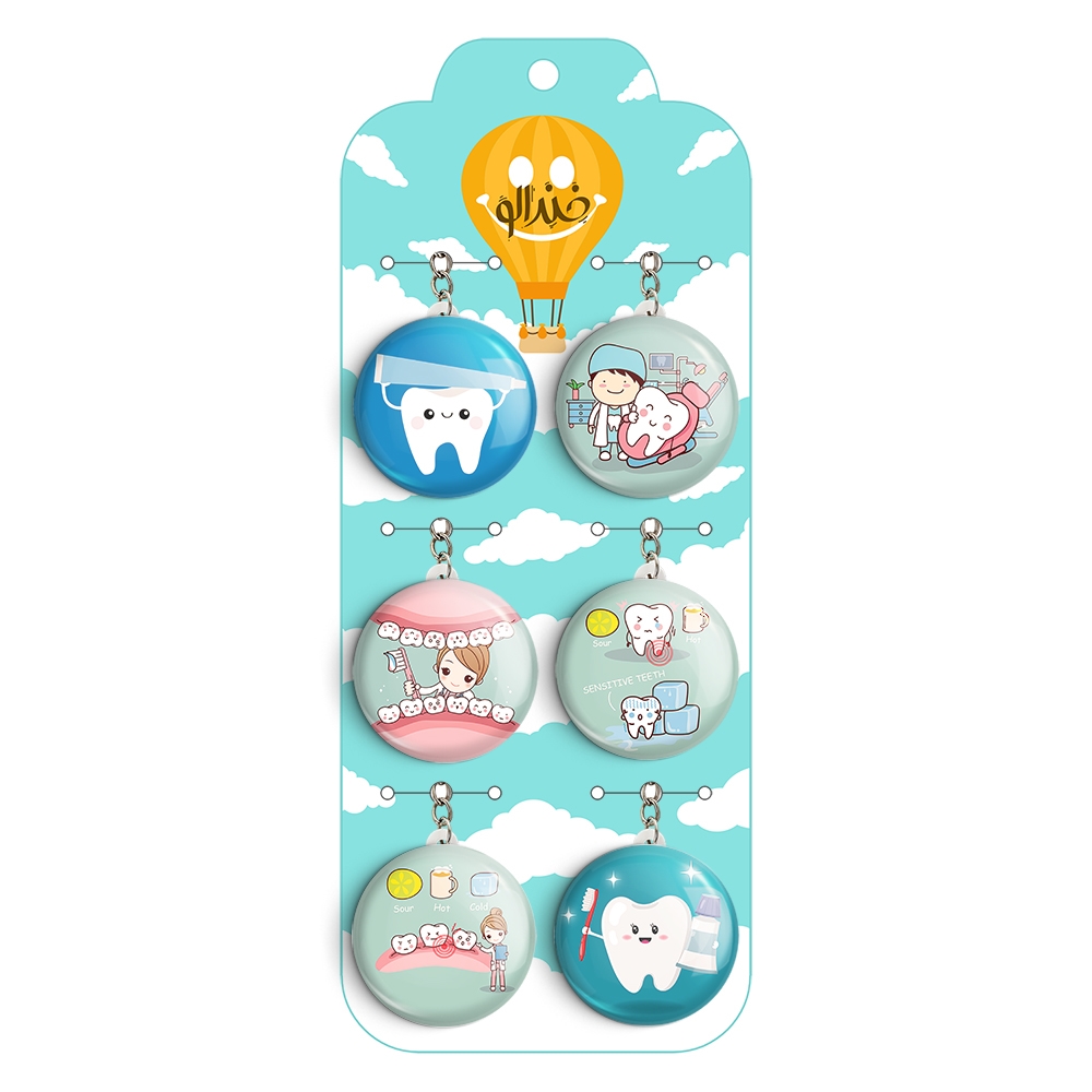 پک 6 عددی جاکلیدی خندالو طرح دندان و دندان پزشکی کودکانه با استفاده از روکش سلفون حرارتی مات ضدخش تولید شده که خاصیت ضدخش بودن آن عمر مفید استفاده از جاکلیدی ها را افزایش میدهد. چاپ جاکلیدی ها با دستگاه های استاندارد و با بهترین سطح کیفیت صورت گرفته و طرح با شفافیتی مثال زدنی و با سلفون چسبی تولید شده است که باعث شده محصول نهایی بدون شکست نور دیده شود.