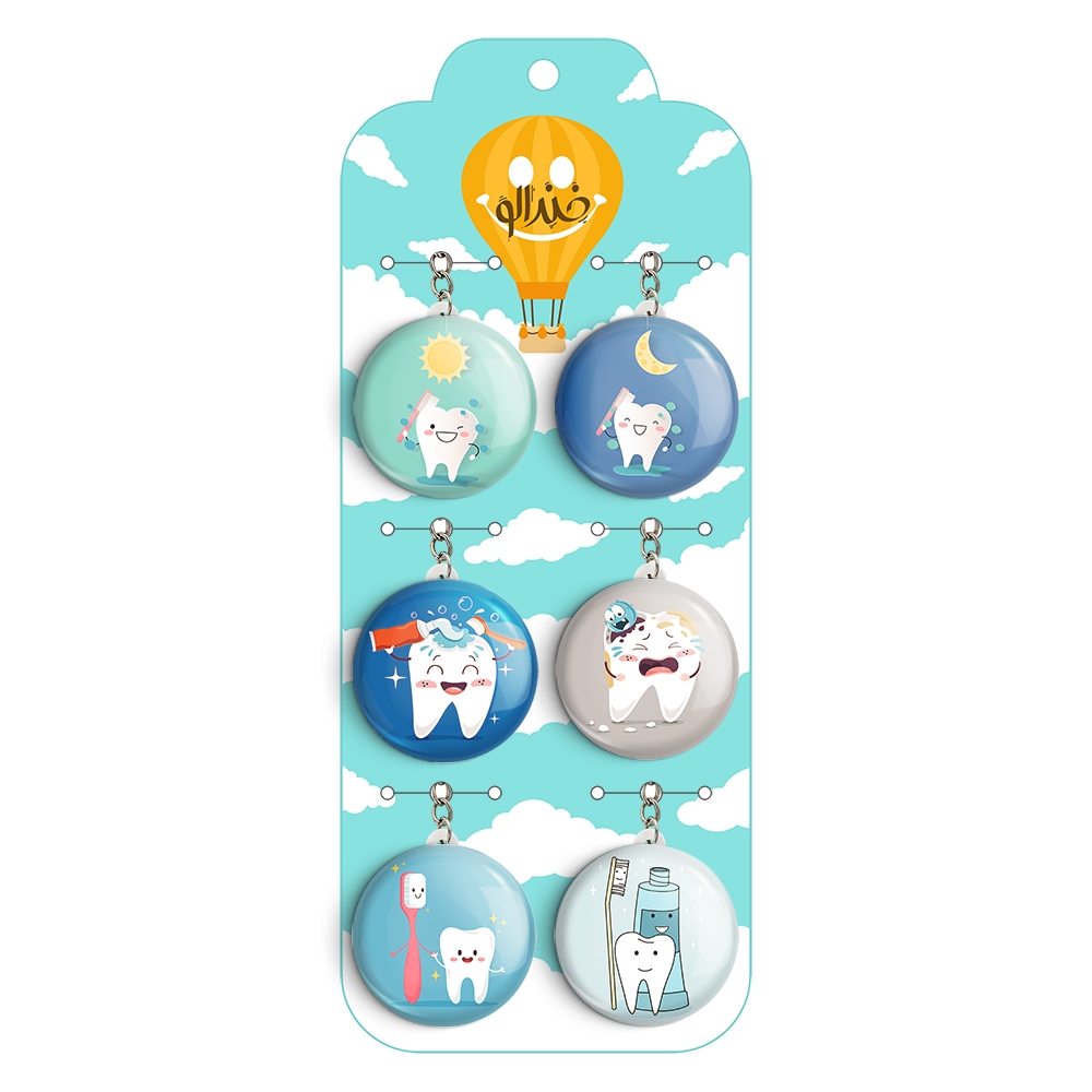 پک 6 عددی جاکلیدی خندالو طرح دندان و دندان پزشکی کودکانه با استفاده از روکش سلفون حرارتی مات ضدخش تولید شده که خاصیت ضدخش بودن آن عمر مفید استفاده از جاکلیدی ها را افزایش میدهد. چاپ جاکلیدی ها با دستگاه های استاندارد و با بهترین سطح کیفیت صورت گرفته و طرح با شفافیتی مثال زدنی و با سلفون چسبی تولید شده است که باعث شده محصول نهایی بدون شکست نور دیده شود.