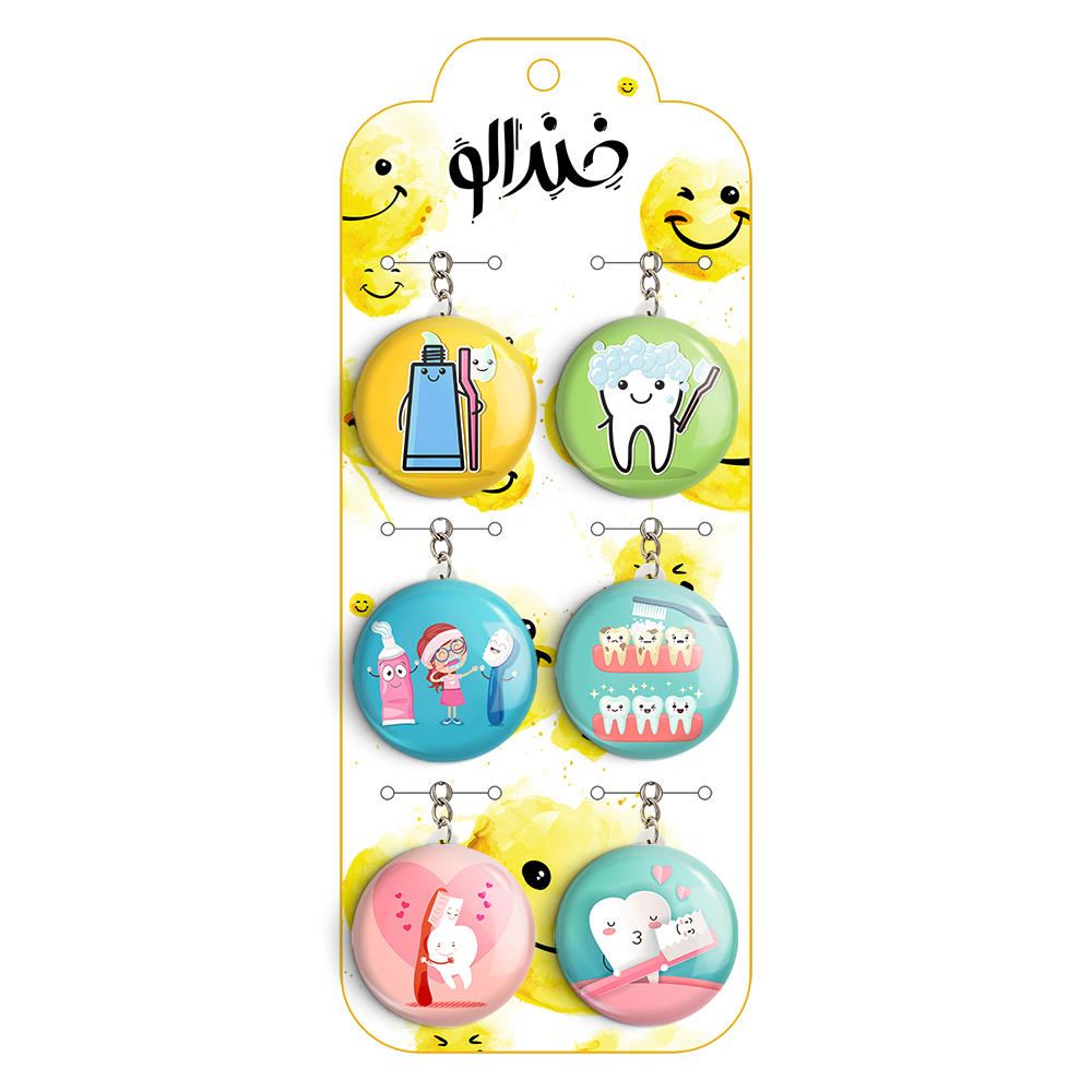 پک 6 عددی جاکلیدی خندالو طرح دندان و دندان پزشکی کودکانه با استفاده از روکش سلفون حرارتی مات ضدخش تولید شده که خاصیت ضدخش بودن آن عمر مفید استفاده از جاکلیدی ها را افزایش میدهد. چاپ جاکلیدی ها با دستگاه های استاندارد و با بهترین سطح کیفیت صورت گرفته و طرح با شفافیتی مثال زدنی و با سلفون چسبی تولید شده است که باعث شده محصول نهایی بدون شکست نور دیده شود.