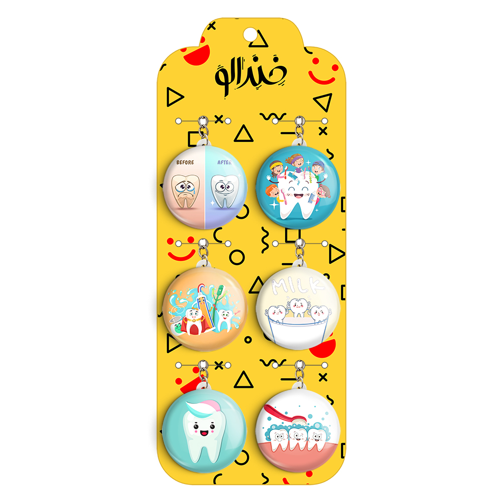 پک 6 عددی جاکلیدی خندالو طرح دندان و دندان پزشکی کودکانه با استفاده از روکش سلفون حرارتی مات ضدخش تولید شده که خاصیت ضدخش بودن آن عمر مفید استفاده از جاکلیدی ها را افزایش میدهد. چاپ جاکلیدی ها با دستگاه های استاندارد و با بهترین سطح کیفیت صورت گرفته و طرح با شفافیتی مثال زدنی و با سلفون چسبی تولید شده است که باعث شده محصول نهایی بدون شکست نور دیده شود.
