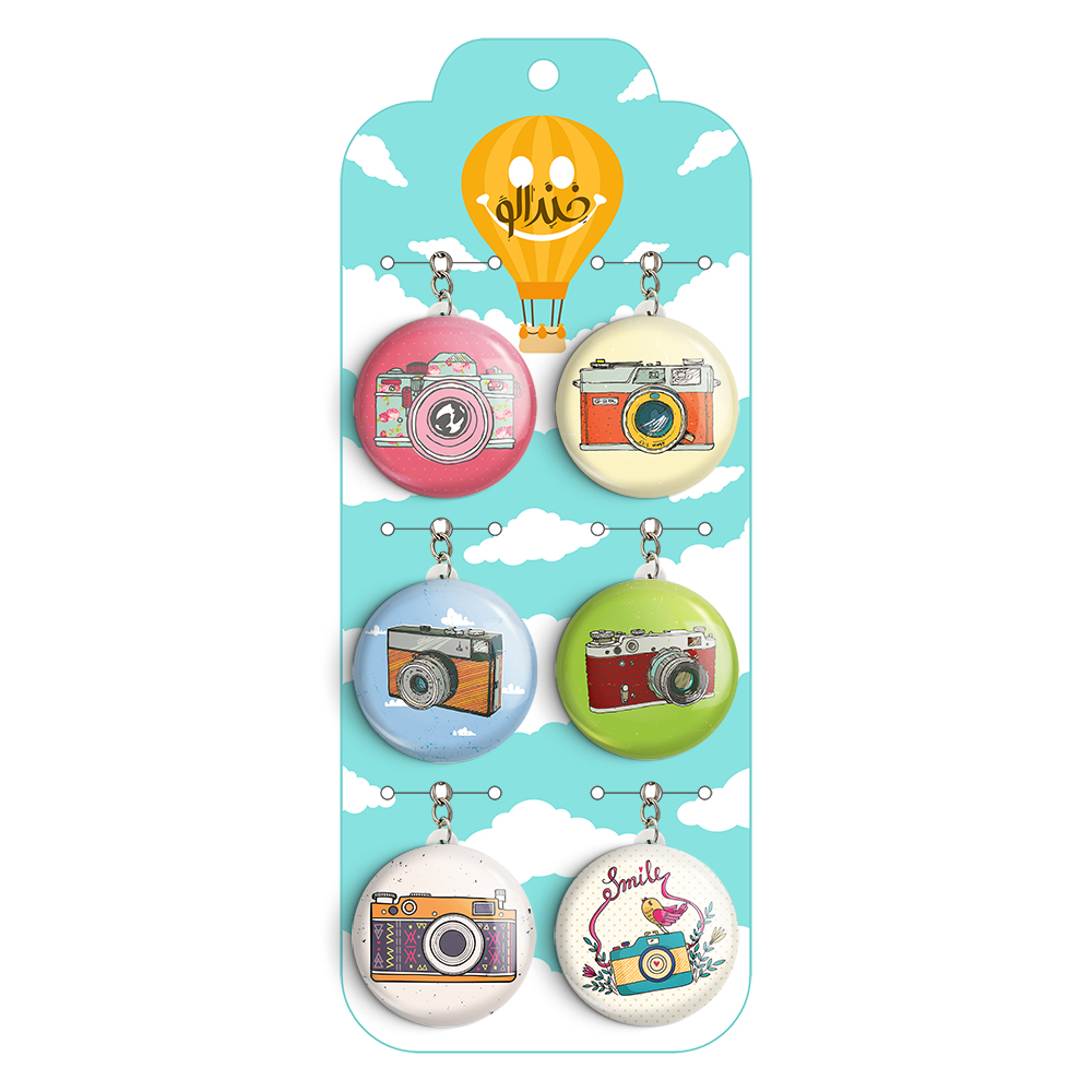 پک 6 عددی جاکلیدی خندالو طرح دوربین (Camera) با استفاده از روکش سلفون حرارتی مات ضدخش تولید شده که خاصیت ضدخش بودن آن عمر مفید استفاده از جاکلیدی ها را افزایش میدهد. چاپ جاکلیدی ها با دستگاه های استاندارد و با بهترین سطح کیفیت صورت گرفته و طرح با شفافیتی مثال زدنی و با سلفون چسبی تولید شده است که باعث شده محصول نهایی بدون شکست نور دیده شود.