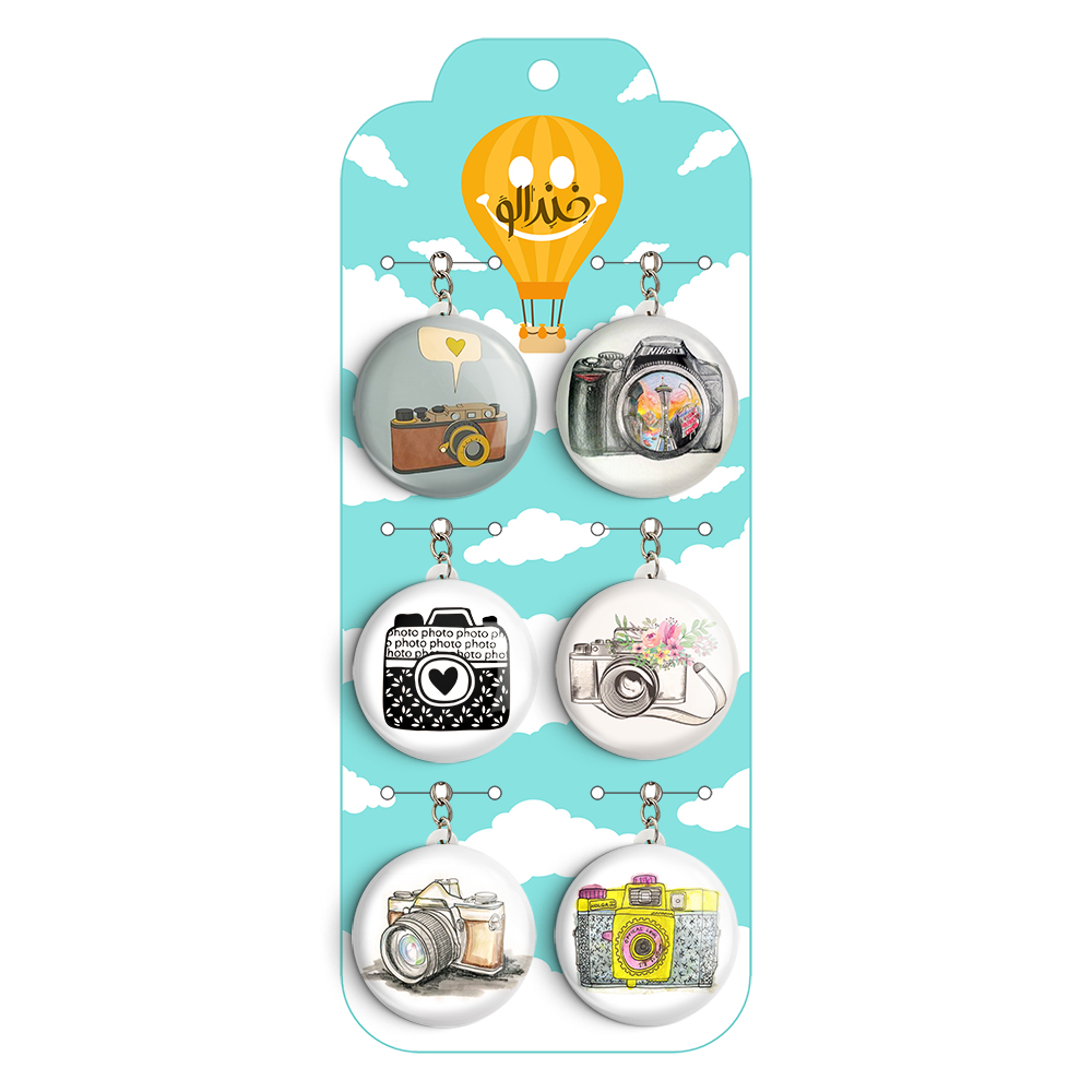 پک 6 عددی جاکلیدی خندالو طرح دوربین (Camera) با استفاده از روکش سلفون حرارتی مات ضدخش تولید شده که خاصیت ضدخش بودن آن عمر مفید استفاده از جاکلیدی ها را افزایش میدهد. چاپ جاکلیدی ها با دستگاه های استاندارد و با بهترین سطح کیفیت صورت گرفته و طرح با شفافیتی مثال زدنی و با سلفون چسبی تولید شده است که باعث شده محصول نهایی بدون شکست نور دیده شود.