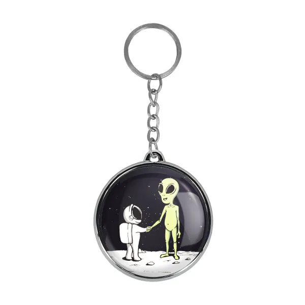 جاکلیدی دوطرفه آدم فضایی و فضانورد خندالو محصولی کاربردی و جدید است که در هر دو سمت محصول، تصویری متفاوت اما از یک موضوع چاپ شده و تفاوت اصلی آن با جاکلیدی های یک طرفه در همین است که هر دو سمت پشت و روی جاکلیدی، طرحی دیدنی و جذاب دارد. همچنین رینگ بکار برده شده برای دور طرح ها آبکاری کروم درجه یک و رنگ ثابت است و برخلاف سایر محصولات مشابه، از رنگ های متفرقه و یا سفید استفاده نشده، که این مهم، زیبایی محصول نهایی را چند برابر کرده است. جاکلیدی های دوطرفه آدم فضایی و فضانورد با استفاده از روکش سلفون براق ضدخش تولید شده که خاصیت ضدخش بودن آن عمر مفید استفاده از جاکلیدی ها را افزایش میدهد. چاپ جاکلیدی ها با دستگاه های استاندارد و با بهترین سطح کیفیت صورت گرفته و طرح با شفافیتی مثال زدنی و با سلفون چسبی تولید شده است که باعث شده محصول نهایی بدون شکست نور دیده شود. همچنین بسته بندی جذاب و مینیمال جاکلیدی دوطرفه آدم فضایی و فضانورد ، آنها را محصولی مناسب هدیه کرده است. زنجیر و حلقه بکار برده شده در جاکلیدی خندالو از نوع حلقه ضخیم و محکم بوده و حین استفاده آسیب نمی بیند.