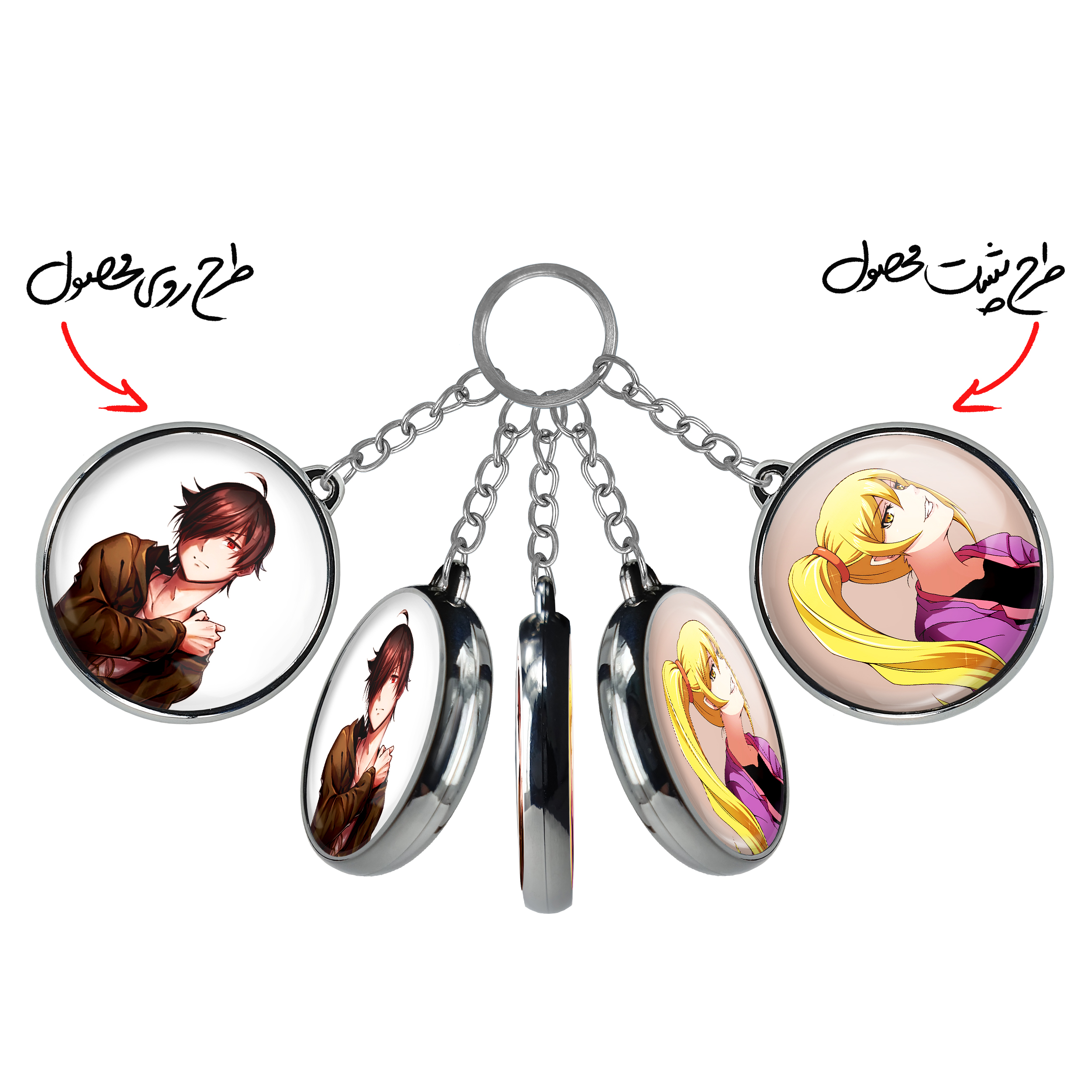 جاکلیدی دوطرفه آراراگی کویومی انیمه مونوگاتاری خندالو محصولی کاربردی و جدید است که در هر دو سمت محصول، تصویری متفاوت اما از یک موضوع چاپ شده و تفاوت اصلی آن با جاکلیدی های یک طرفه در همین است که هر دو سمت پشت و روی جاکلیدی، طرحی دیدنی و جذاب دارد.