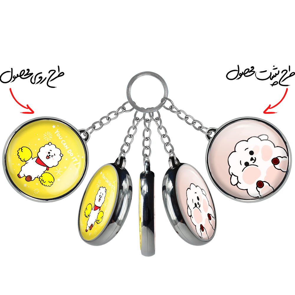 جاکلیدی دوطرفه آر جی BT21 RJخندالو محصولی کاربردی و جدید است که در هر دو سمت محصول، تصویری متفاوت اما از یک موضوع چاپ شده و تفاوت اصلی آن با جاکلیدی های یک طرفه در همین است که هر دو سمت پشت و روی جاکلیدی، طرحی دیدنی و جذاب دارد.