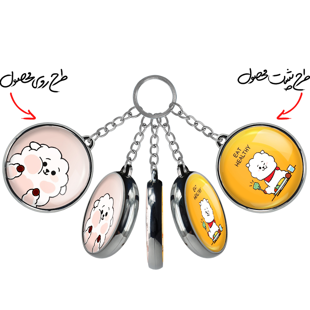 جاکلیدی دوطرفه آر جی BT21 RJخندالو محصولی کاربردی و جدید است که در هر دو سمت محصول، تصویری متفاوت اما از یک موضوع چاپ شده و تفاوت اصلی آن با جاکلیدی های یک طرفه در همین است که هر دو سمت پشت و روی جاکلیدی، طرحی دیدنی و جذاب دارد.