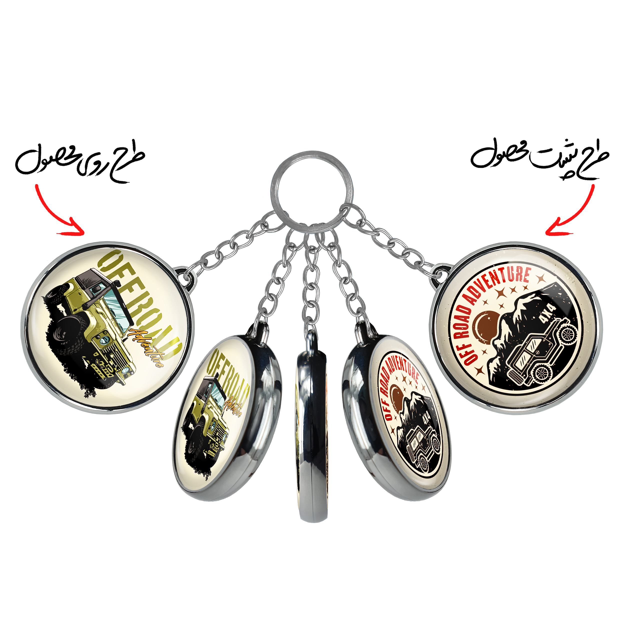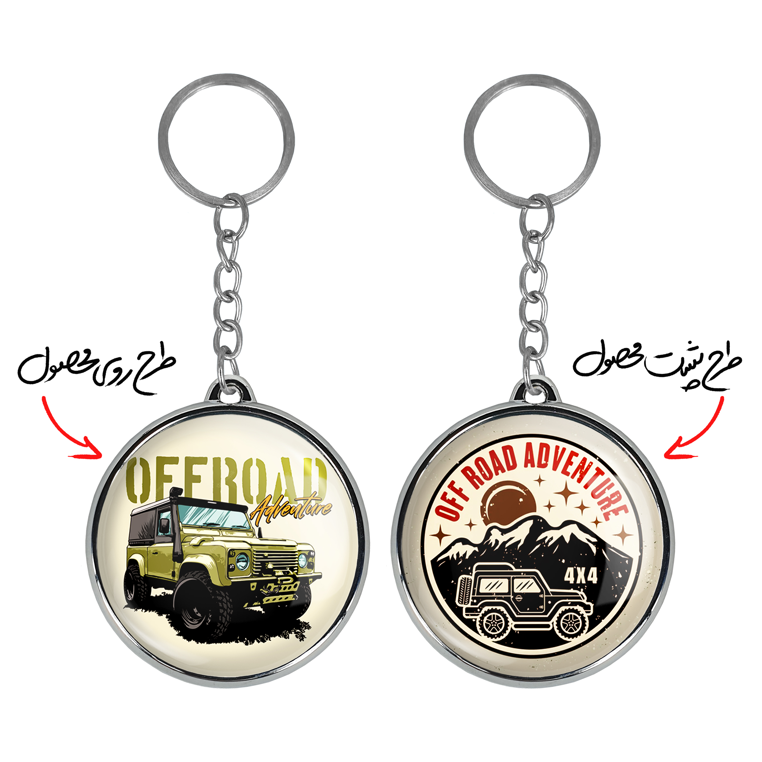 جاکلیدی دوطرفه آفرود Off Roadخندالو محصولی کاربردی و جدید است که در هر دو سمت محصول، تصویری متفاوت اما از یک موضوع چاپ شده و تفاوت اصلی آن با جاکلیدی های یک طرفه در همین است که هر دو سمت پشت و روی جاکلیدی، طرحی دیدنی و جذاب دارد.