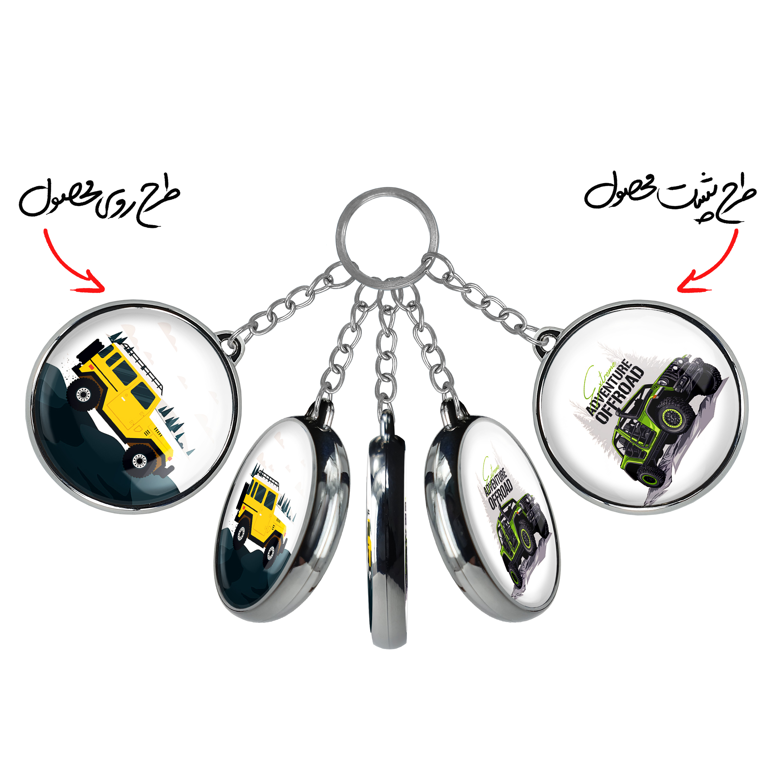 جاکلیدی دوطرفه آفرود Off Roadخندالو محصولی کاربردی و جدید است که در هر دو سمت محصول، تصویری متفاوت اما از یک موضوع چاپ شده و تفاوت اصلی آن با جاکلیدی های یک طرفه در همین است که هر دو سمت پشت و روی جاکلیدی، طرحی دیدنی و جذاب دارد. همچنین رینگ بکار برده شده برای دور طرح ها آبکاری کروم درجه یک و رنگ ثابت است و برخلاف سایر محصولات مشابه، از رنگ های متفرقه و یا سفید استفاده نشده، که این مهم، زیبایی محصول نهایی را چند برابر کرده است. جاکلیدی های دوطرفه آفرود Off Roadبا استفاده از روکش سلفون براق ضدخش تولید شده که خاصیت ضدخش بودن آن عمر مفید استفاده از جاکلیدی ها را افزایش میدهد. چاپ جاکلیدی ها با دستگاه های استاندارد و با بهترین سطح کیفیت صورت گرفته و طرح با شفافیتی مثال زدنی و با سلفون چسبی تولید شده است که باعث شده محصول نهایی بدون شکست نور دیده شود. همچنین بسته بندی جذاب و مینیمال جاکلیدی دوطرفه آفرود Off Road، آنها را محصولی مناسب هدیه کرده است. زنجیر و حلقه بکار برده شده در جاکلیدی خندالو از نوع حلقه ضخیم و محکم بوده و حین استفاده آسیب نمی بیند.