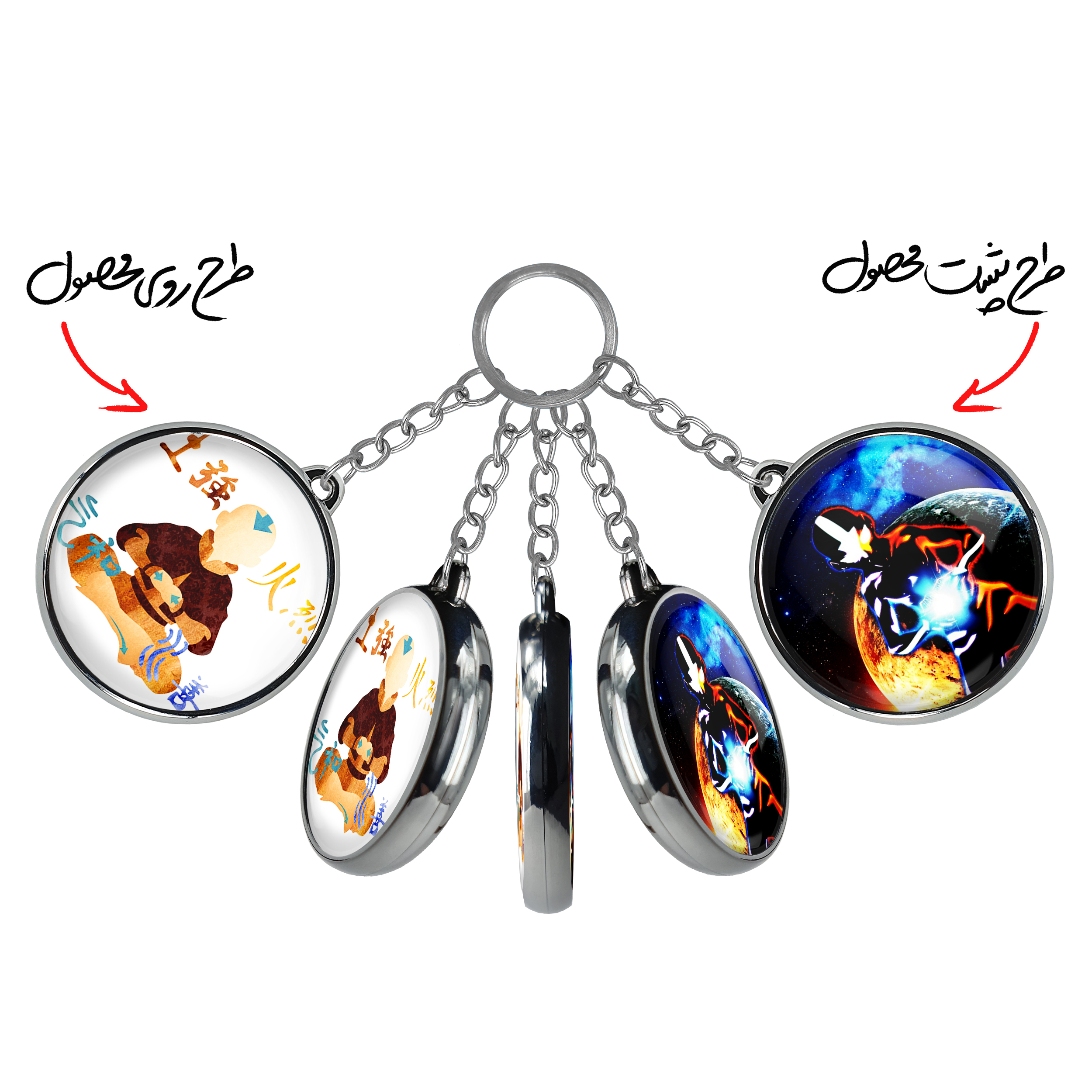 جاکلیدی دوطرفه آواتار انیمه آواتار Avatar خندالو محصولی کاربردی و جدید است که در هر دو سمت محصول، تصویری متفاوت اما از یک موضوع چاپ شده و تفاوت اصلی آن با جاکلیدی های یک طرفه در همین است که هر دو سمت پشت و روی جاکلیدی، طرحی دیدنی و جذاب دارد. همچنین رینگ بکار برده شده برای دور طرح ها آبکاری کروم درجه یک و رنگ ثابت است و برخلاف سایر محصولات مشابه، از رنگ های متفرقه و یا سفید استفاده نشده، که این مهم، زیبایی محصول نهایی را چند برابر کرده است. جاکلیدی های دوطرفه آواتار انیمه آواتار Avatar با استفاده از روکش سلفون براق ضدخش تولید شده که خاصیت ضدخش بودن آن عمر مفید استفاده از جاکلیدی ها را افزایش میدهد. چاپ جاکلیدی ها با دستگاه های استاندارد و با بهترین سطح کیفیت صورت گرفته و طرح با شفافیتی مثال زدنی و با سلفون چسبی تولید شده است که باعث شده محصول نهایی بدون شکست نور دیده شود. همچنین بسته بندی جذاب و مینیمال جاکلیدی دوطرفه آواتار انیمه آواتار Avatar ، آنها را محصولی مناسب هدیه کرده است. زنجیر و حلقه بکار برده شده در جاکلیدی خندالو از نوع حلقه ضخیم و محکم بوده و حین استفاده آسیب نمی بیند.