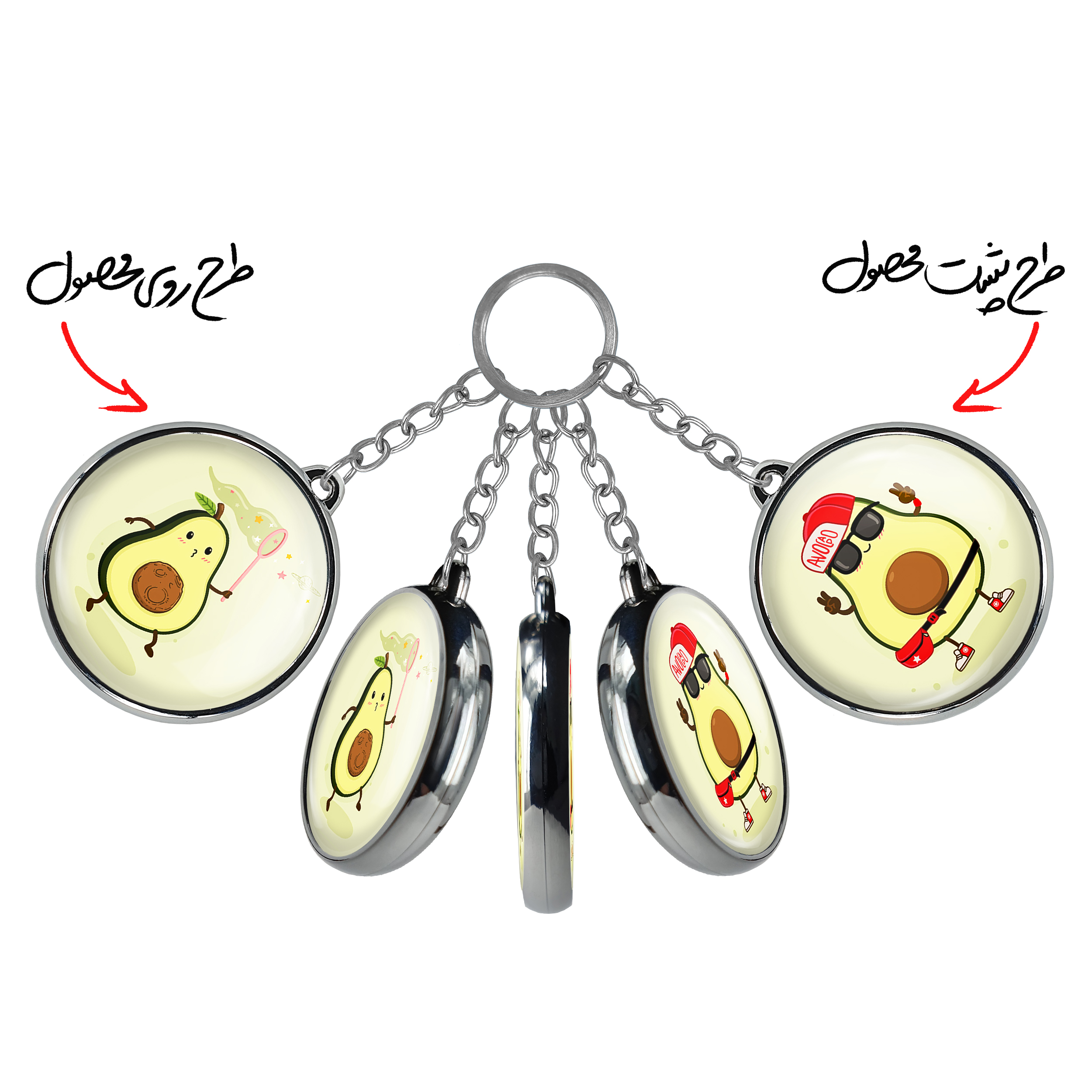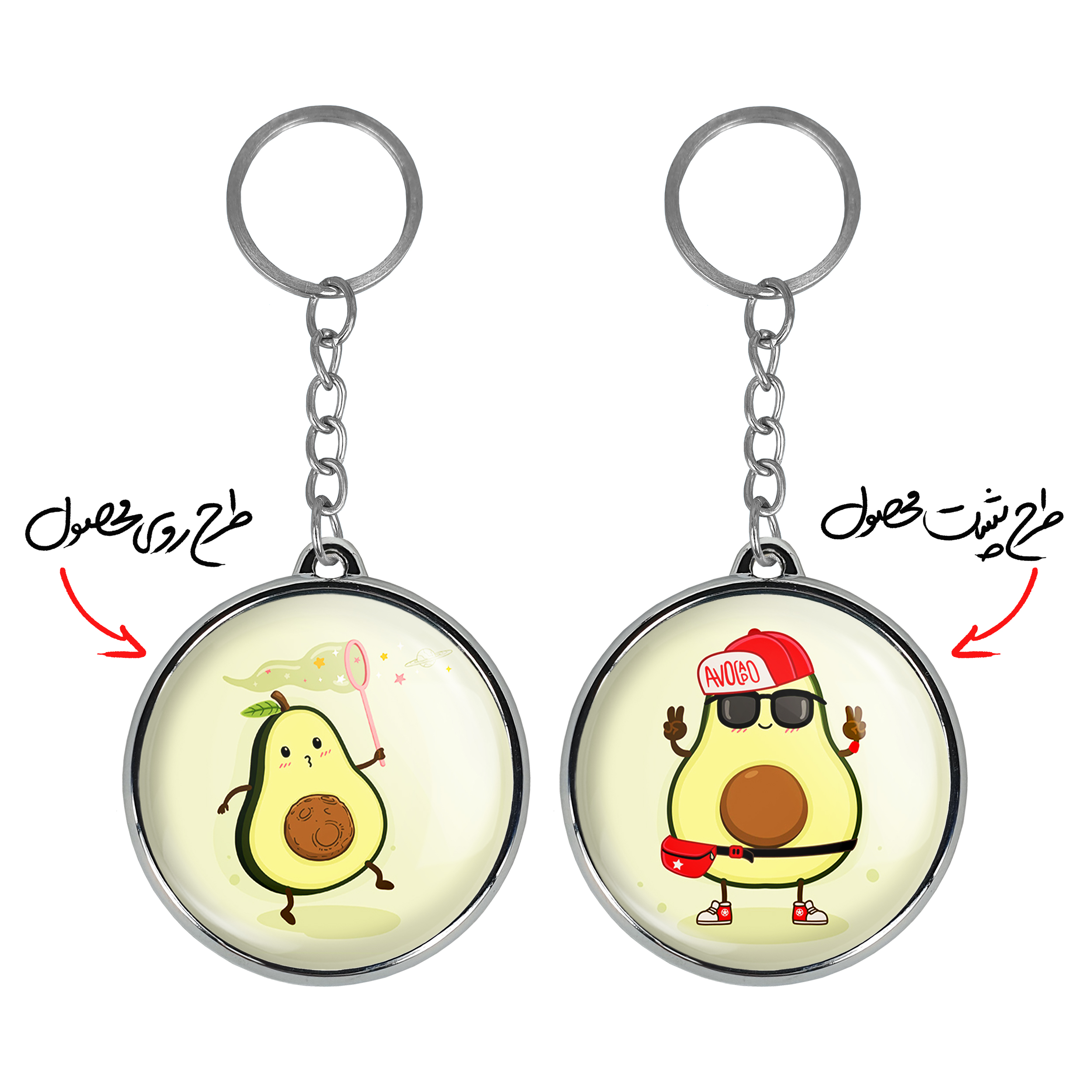 جاکلیدی دوطرفه آووکادوخندالو محصولی کاربردی و جدید است که در هر دو سمت محصول، تصویری متفاوت اما از یک موضوع چاپ شده و تفاوت اصلی آن با جاکلیدی های یک طرفه در همین است که هر دو سمت پشت و روی جاکلیدی، طرحی دیدنی و جذاب دارد.