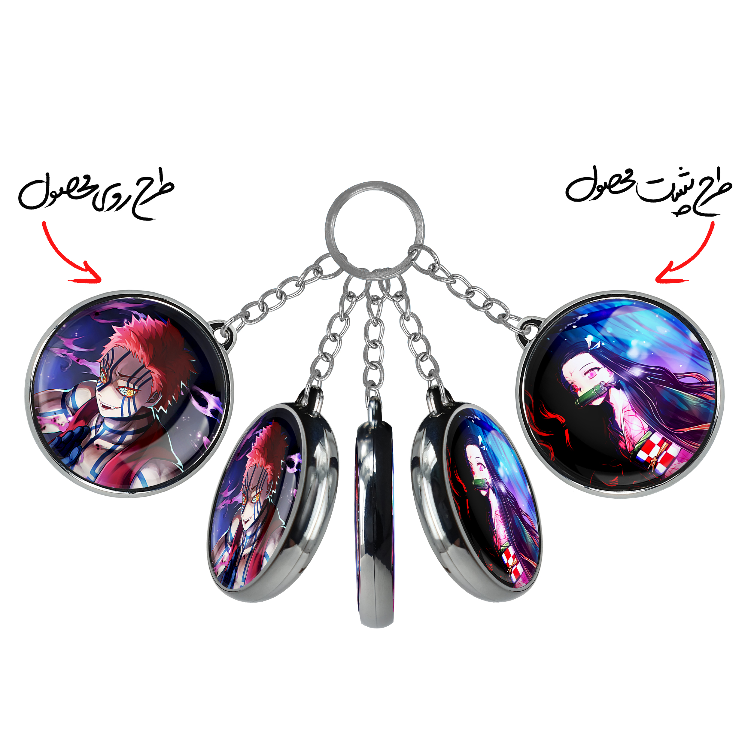 جاکلیدی دوطرفه آکازا انیمه شیطان کش خندالو محصولی کاربردی و جدید است که در هر دو سمت محصول، تصویری متفاوت اما از یک موضوع چاپ شده و تفاوت اصلی آن با جاکلیدی های یک طرفه در همین است که هر دو سمت پشت و روی جاکلیدی، طرحی دیدنی و جذاب دارد. همچنین رینگ بکار برده شده برای دور طرح ها آبکاری کروم درجه یک و رنگ ثابت است و برخلاف سایر محصولات مشابه، از رنگ های متفرقه و یا سفید استفاده نشده، که این مهم، زیبایی محصول نهایی را چند برابر کرده است. جاکلیدی های دوطرفه آکازا انیمه شیطان کش با استفاده از روکش سلفون براق ضدخش تولید شده که خاصیت ضدخش بودن آن عمر مفید استفاده از جاکلیدی ها را افزایش میدهد. چاپ جاکلیدی ها با دستگاه های استاندارد و با بهترین سطح کیفیت صورت گرفته و طرح با شفافیتی مثال زدنی و با سلفون چسبی تولید شده است که باعث شده محصول نهایی بدون شکست نور دیده شود. همچنین بسته بندی جذاب و مینیمال جاکلیدی دوطرفه آکازا انیمه شیطان کش ، آنها را محصولی مناسب هدیه کرده است. زنجیر و حلقه بکار برده شده در جاکلیدی خندالو از نوع حلقه ضخیم و محکم بوده و حین استفاده آسیب نمی بیند.