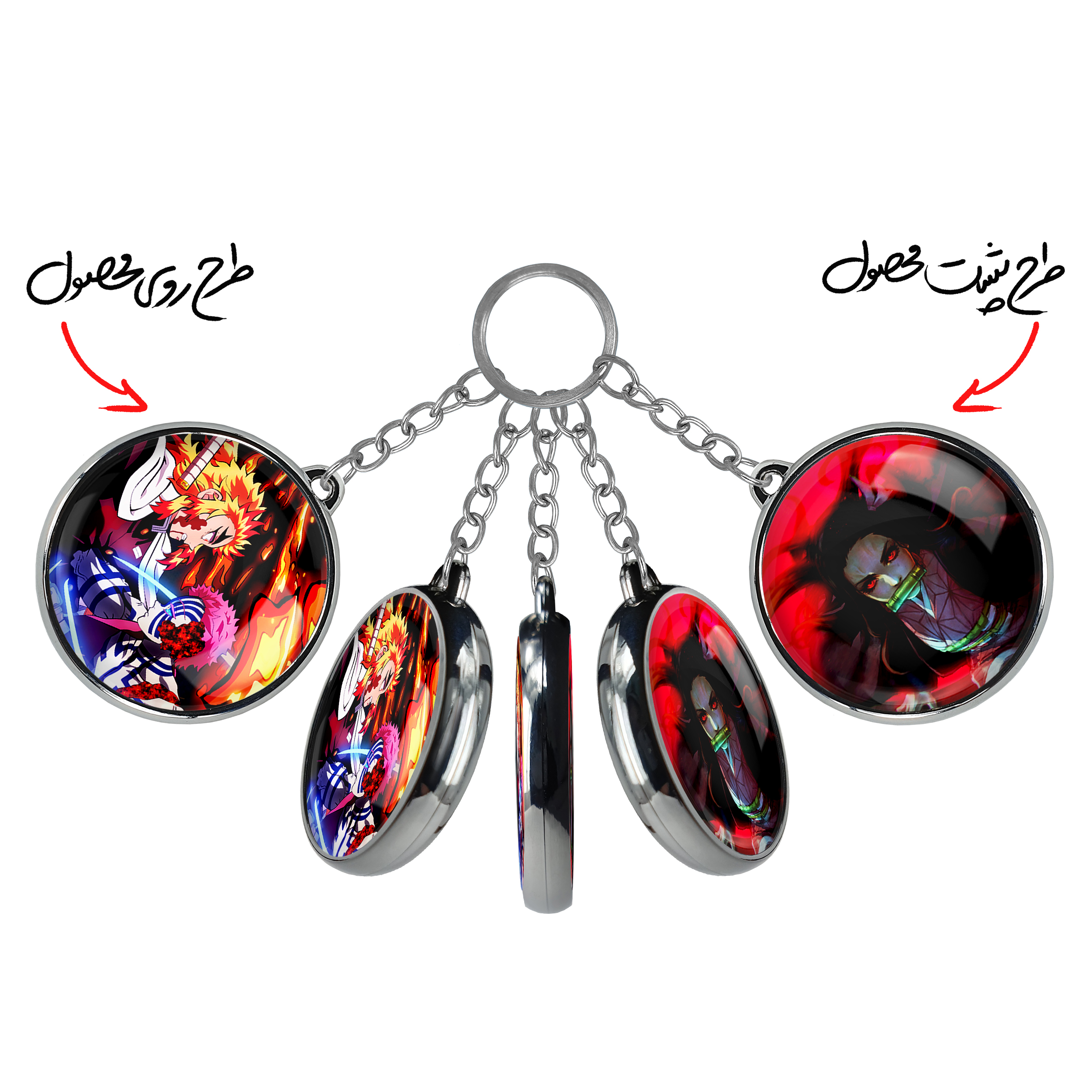 جاکلیدی دوطرفه آکازا و رنگوکو انیمه شیطان کش خندالو محصولی کاربردی و جدید است که در هر دو سمت محصول، تصویری متفاوت اما از یک موضوع چاپ شده و تفاوت اصلی آن با جاکلیدی های یک طرفه در همین است که هر دو سمت پشت و روی جاکلیدی، طرحی دیدنی و جذاب دارد. همچنین رینگ بکار برده شده برای دور طرح ها آبکاری کروم درجه یک و رنگ ثابت است و برخلاف سایر محصولات مشابه، از رنگ های متفرقه و یا سفید استفاده نشده، که این مهم، زیبایی محصول نهایی را چند برابر کرده است. جاکلیدی های دوطرفه آکازا و رنگوکو انیمه شیطان کش با استفاده از روکش سلفون براق ضدخش تولید شده که خاصیت ضدخش بودن آن عمر مفید استفاده از جاکلیدی ها را افزایش میدهد. چاپ جاکلیدی ها با دستگاه های استاندارد و با بهترین سطح کیفیت صورت گرفته و طرح با شفافیتی مثال زدنی و با سلفون چسبی تولید شده است که باعث شده محصول نهایی بدون شکست نور دیده شود. همچنین بسته بندی جذاب و مینیمال جاکلیدی دوطرفه آکازا و رنگوکو انیمه شیطان کش ، آنها را محصولی مناسب هدیه کرده است. زنجیر و حلقه بکار برده شده در جاکلیدی خندالو از نوع حلقه ضخیم و محکم بوده و حین استفاده آسیب نمی بیند.