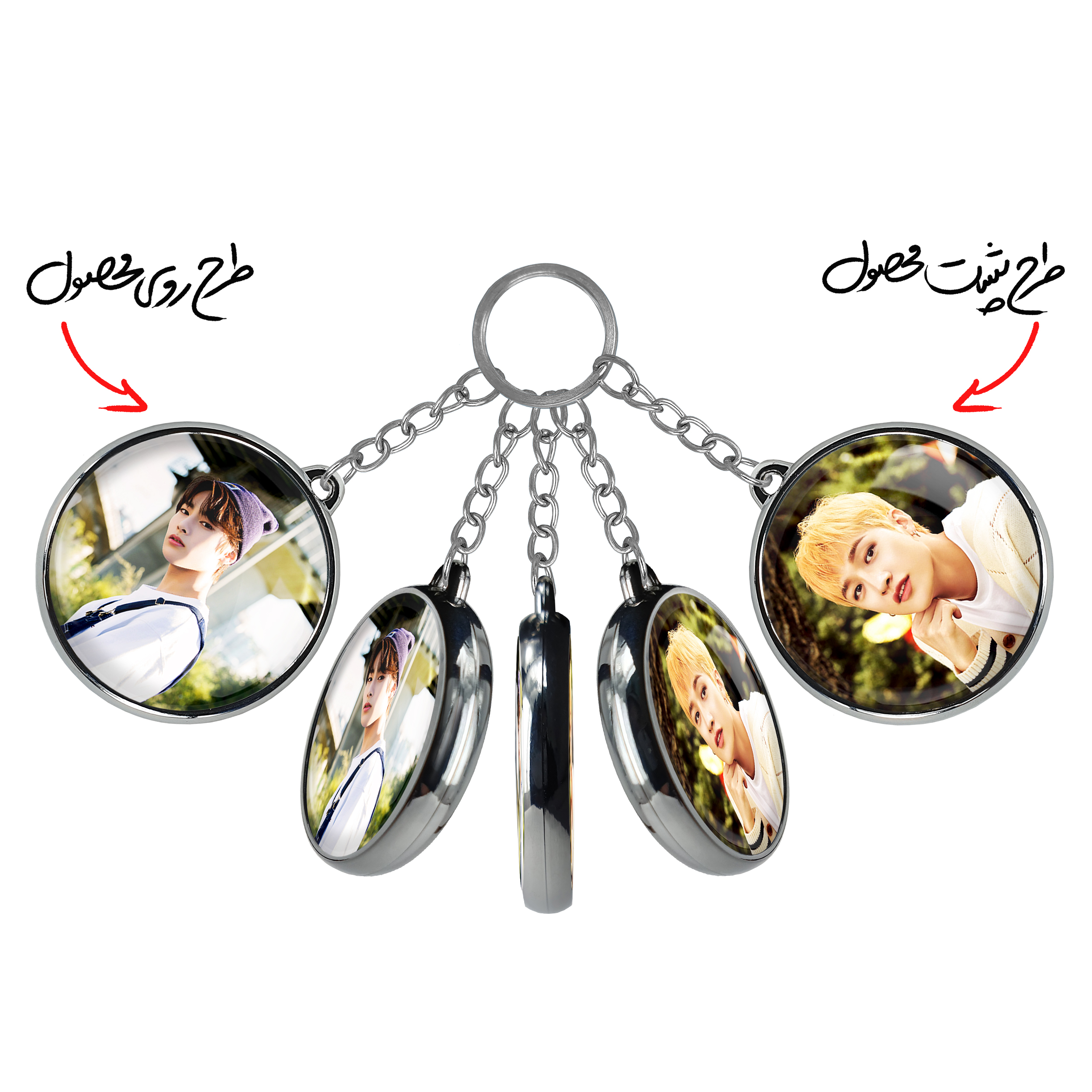 جاکلیدی دوطرفه آی ان گروه استری کیدز Stray Kids خندالو محصولی کاربردی و جدید است که در هر دو سمت محصول، تصویری متفاوت اما از یک موضوع چاپ شده و تفاوت اصلی آن با جاکلیدی های یک طرفه در همین است که هر دو سمت پشت و روی جاکلیدی، طرحی دیدنی و جذاب دارد. همچنین رینگ بکار برده شده برای دور طرح ها آبکاری کروم درجه یک و رنگ ثابت است و برخلاف سایر محصولات مشابه، از رنگ های متفرقه و یا سفید استفاده نشده، که این مهم، زیبایی محصول نهایی را چند برابر کرده است. جاکلیدی های دوطرفه آی ان گروه استری کیدز Stray Kids با استفاده از روکش سلفون براق ضدخش تولید شده که خاصیت ضدخش بودن آن عمر مفید استفاده از جاکلیدی ها را افزایش میدهد. چاپ جاکلیدی ها با دستگاه های استاندارد و با بهترین سطح کیفیت صورت گرفته و طرح با شفافیتی مثال زدنی و با سلفون چسبی تولید شده است که باعث شده محصول نهایی بدون شکست نور دیده شود. همچنین بسته بندی جذاب و مینیمال جاکلیدی دوطرفه آی ان گروه استری کیدز Stray Kids ، آنها را محصولی مناسب هدیه کرده است. زنجیر و حلقه بکار برده شده در جاکلیدی خندالو از نوع حلقه ضخیم و محکم بوده و حین استفاده آسیب نمی بیند.