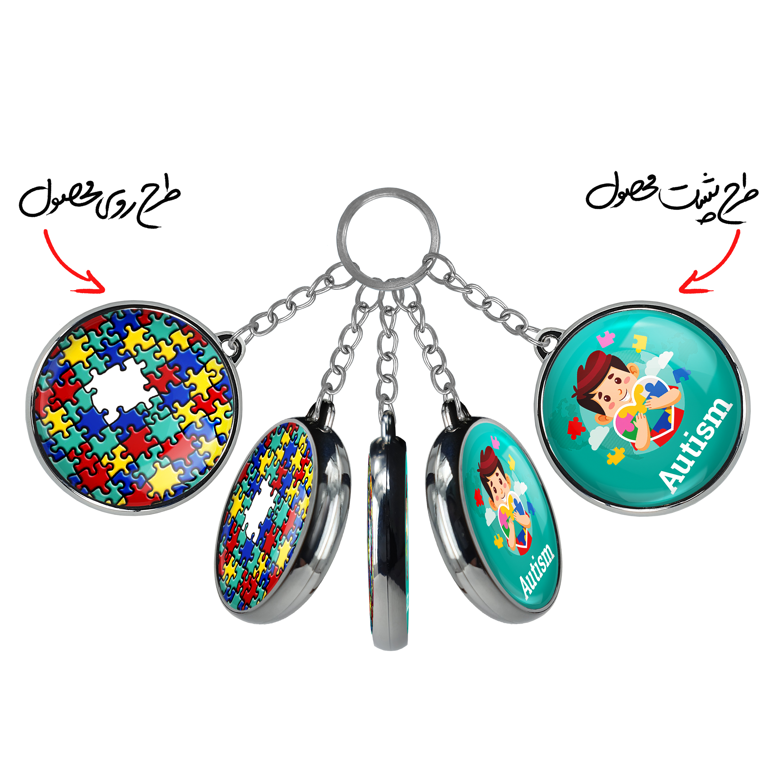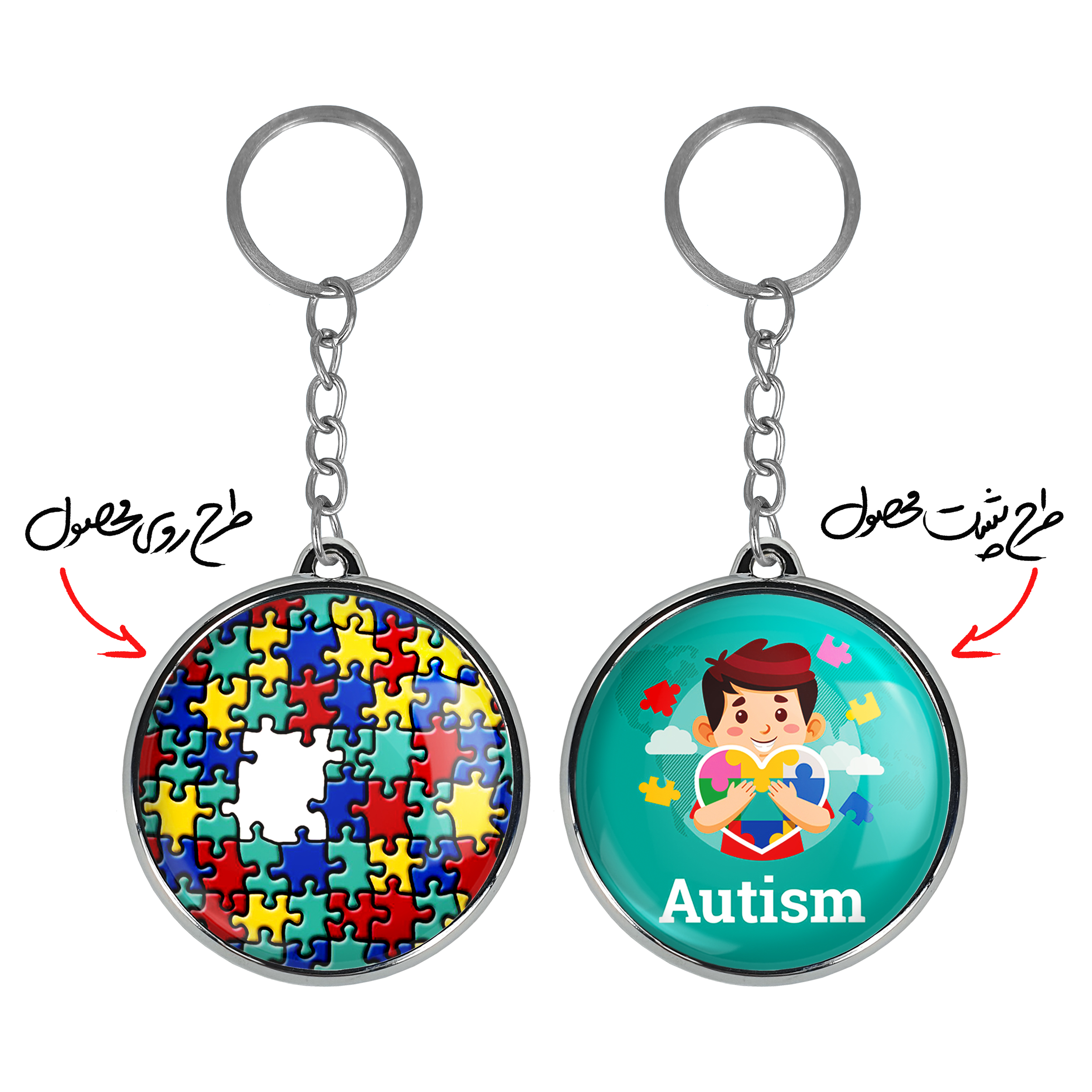 جاکلیدی دوطرفه اتیسم Autismخندالو محصولی کاربردی و جدید است که در هر دو سمت محصول، تصویری متفاوت اما از یک موضوع چاپ شده و تفاوت اصلی آن با جاکلیدی های یک طرفه در همین است که هر دو سمت پشت و روی جاکلیدی، طرحی دیدنی و جذاب دارد.