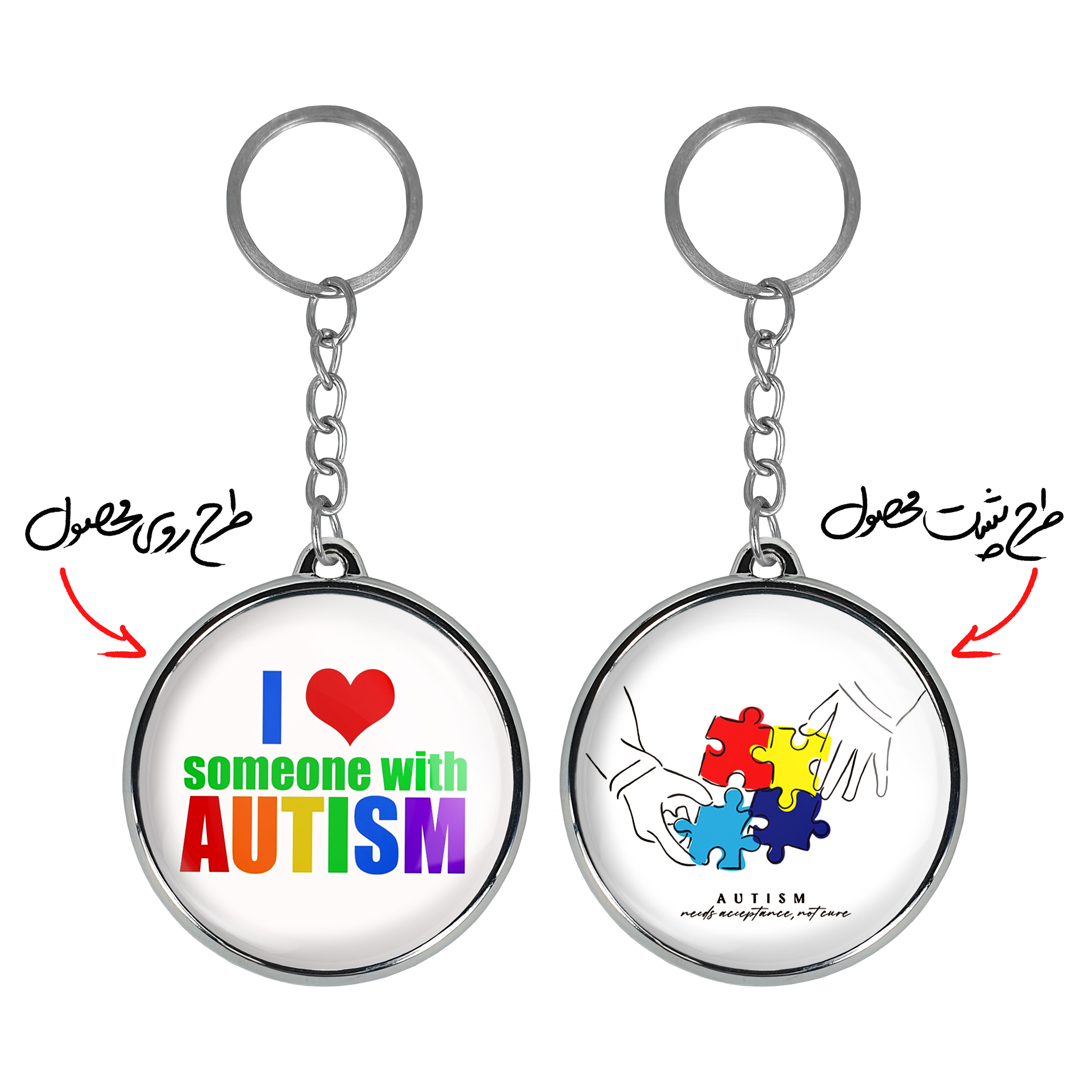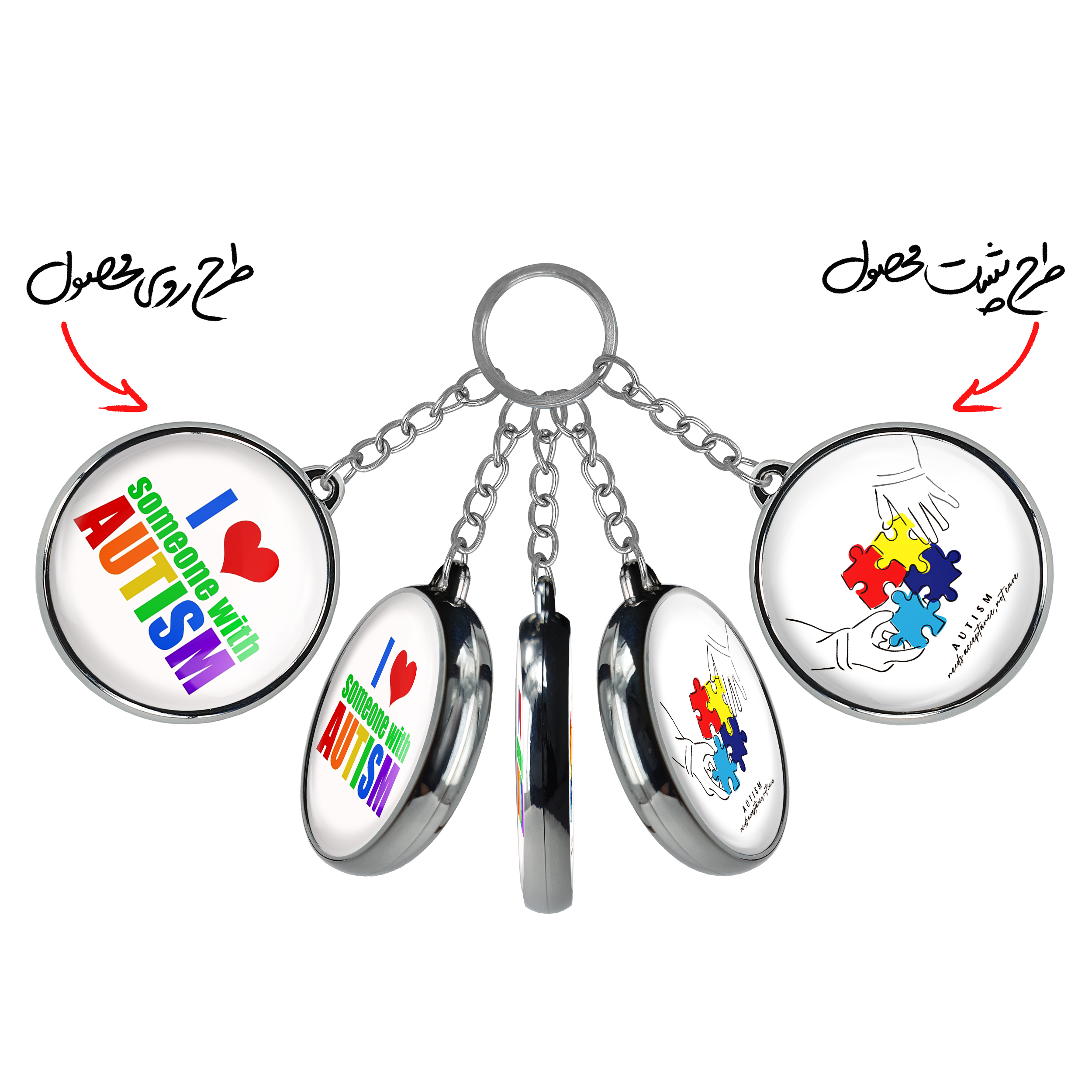 جاکلیدی دوطرفه اتیسم Autismخندالو محصولی کاربردی و جدید است که در هر دو سمت محصول، تصویری متفاوت اما از یک موضوع چاپ شده و تفاوت اصلی آن با جاکلیدی های یک طرفه در همین است که هر دو سمت پشت و روی جاکلیدی، طرحی دیدنی و جذاب دارد.