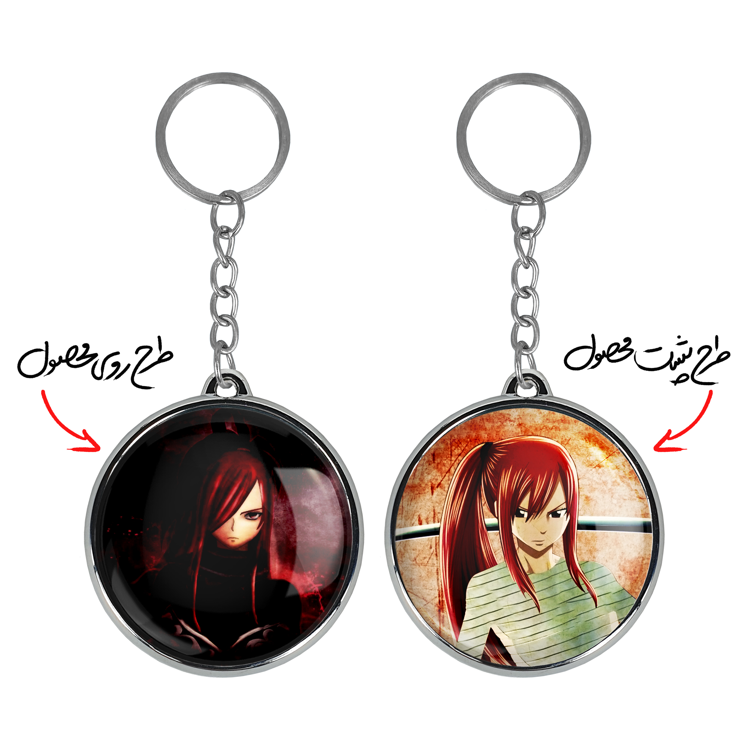 جاکلیدی دوطرفه ارزا انیمه فری تیل Fairy Tail خندالو محصولی کاربردی و جدید است که در هر دو سمت محصول، تصویری متفاوت اما از یک موضوع چاپ شده و تفاوت اصلی آن با جاکلیدی های یک طرفه در همین است که هر دو سمت پشت و روی جاکلیدی، طرحی دیدنی و جذاب دارد. همچنین رینگ بکار برده شده برای دور طرح ها آبکاری کروم درجه یک و رنگ ثابت است و برخلاف سایر محصولات مشابه، از رنگ های متفرقه و یا سفید استفاده نشده، که این مهم، زیبایی محصول نهایی را چند برابر کرده است. جاکلیدی های دوطرفه ارزا انیمه فری تیل Fairy Tail با استفاده از روکش سلفون براق ضدخش تولید شده که خاصیت ضدخش بودن آن عمر مفید استفاده از جاکلیدی ها را افزایش میدهد. چاپ جاکلیدی ها با دستگاه های استاندارد و با بهترین سطح کیفیت صورت گرفته و طرح با شفافیتی مثال زدنی و با سلفون چسبی تولید شده است که باعث شده محصول نهایی بدون شکست نور دیده شود. همچنین بسته بندی جذاب و مینیمال جاکلیدی دوطرفه ارزا انیمه فری تیل Fairy Tail ، آنها را محصولی مناسب هدیه کرده است. زنجیر و حلقه بکار برده شده در جاکلیدی خندالو از نوع حلقه ضخیم و محکم بوده و حین استفاده آسیب نمی بیند.