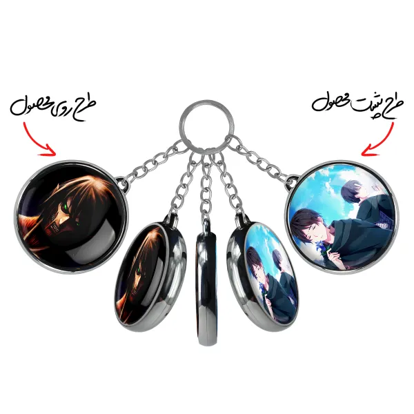 جاکلیدی دوطرفه ارن حالت تایتانی انیمه اتک آن تایتان Attack on Titan خندالو محصولی کاربردی و جدید است که در هر دو سمت محصول، تصویری متفاوت اما از یک موضوع چاپ شده و تفاوت اصلی آن با جاکلیدی های یک طرفه در همین است که هر دو سمت پشت و روی جاکلیدی، طرحی دیدنی و جذاب دارد. همچنین رینگ بکار برده شده برای دور طرح ها آبکاری کروم درجه یک و رنگ ثابت است و برخلاف سایر محصولات مشابه، از رنگ های متفرقه و یا سفید استفاده نشده، که این مهم، زیبایی محصول نهایی را چند برابر کرده است. جاکلیدی های دوطرفه ارن حالت تایتانی انیمه اتک آن تایتان Attack on Titan با استفاده از روکش سلفون براق ضدخش تولید شده که خاصیت ضدخش بودن آن عمر مفید استفاده از جاکلیدی ها را افزایش میدهد. چاپ جاکلیدی ها با دستگاه های استاندارد و با بهترین سطح کیفیت صورت گرفته و طرح با شفافیتی مثال زدنی و با سلفون چسبی تولید شده است که باعث شده محصول نهایی بدون شکست نور دیده شود. همچنین بسته بندی جذاب و مینیمال جاکلیدی دوطرفه ارن حالت تایتانی انیمه اتک آن تایتان Attack on Titan ، آنها را محصولی مناسب هدیه کرده است. زنجیر و حلقه بکار برده شده در جاکلیدی خندالو از نوع حلقه ضخیم و محکم بوده و حین استفاده آسیب نمی بیند.