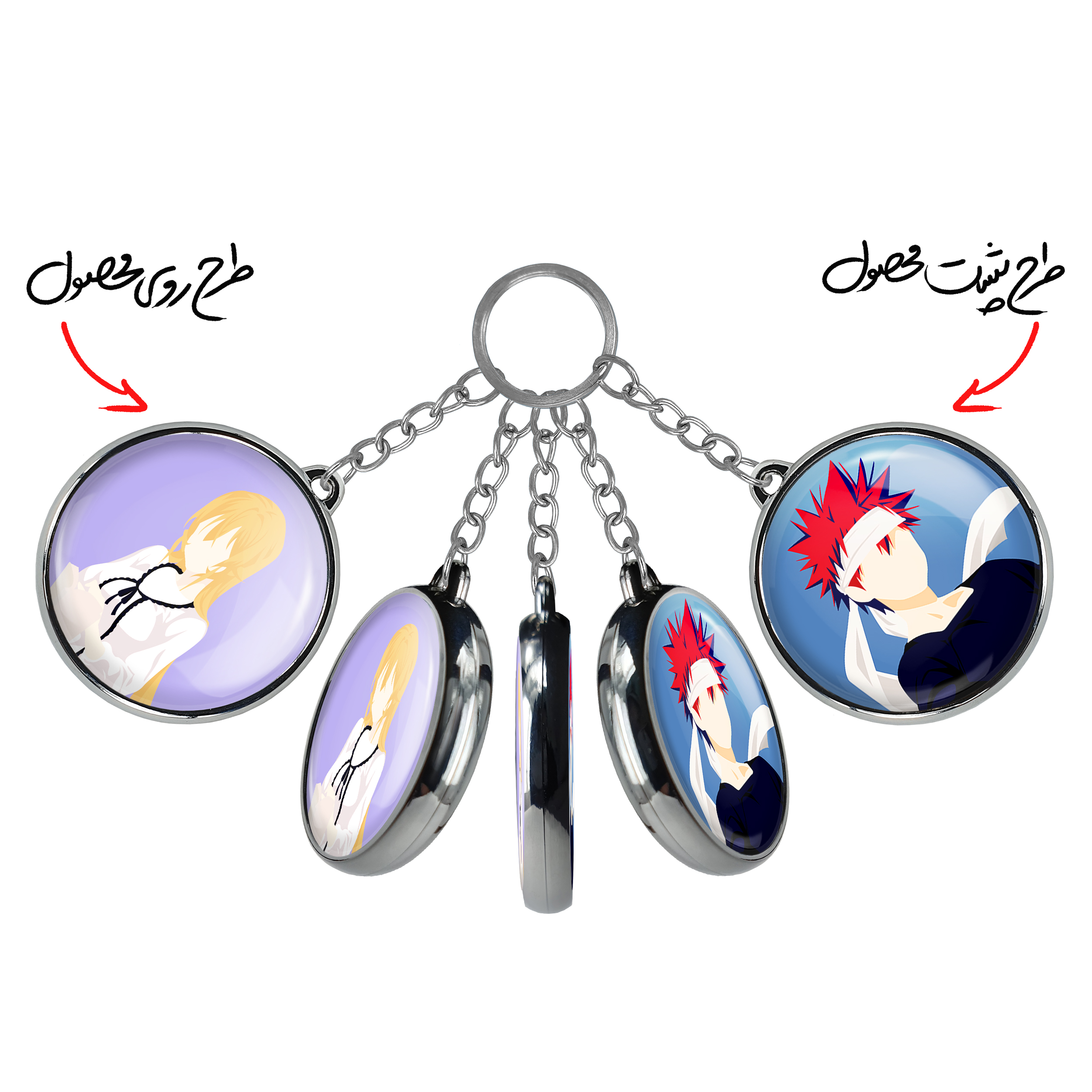 جاکلیدی دوطرفه ارینا انیمه جنگ غذاها Food Wars خندالو محصولی کاربردی و جدید است که در هر دو سمت محصول، تصویری متفاوت اما از یک موضوع چاپ شده و تفاوت اصلی آن با جاکلیدی های یک طرفه در همین است که هر دو سمت پشت و روی جاکلیدی، طرحی دیدنی و جذاب دارد.
